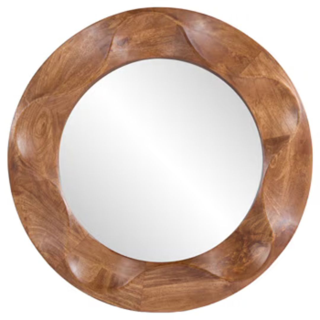 Eye-catching natural beauty. This accent mirror brings movement and depth to your decor with the frame’s undulating wave design. A classic brown finish adds a warm, inviting feel to this contemporary piece.