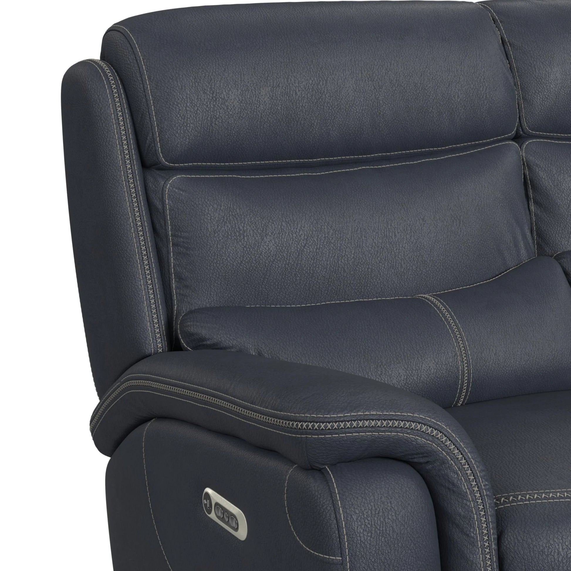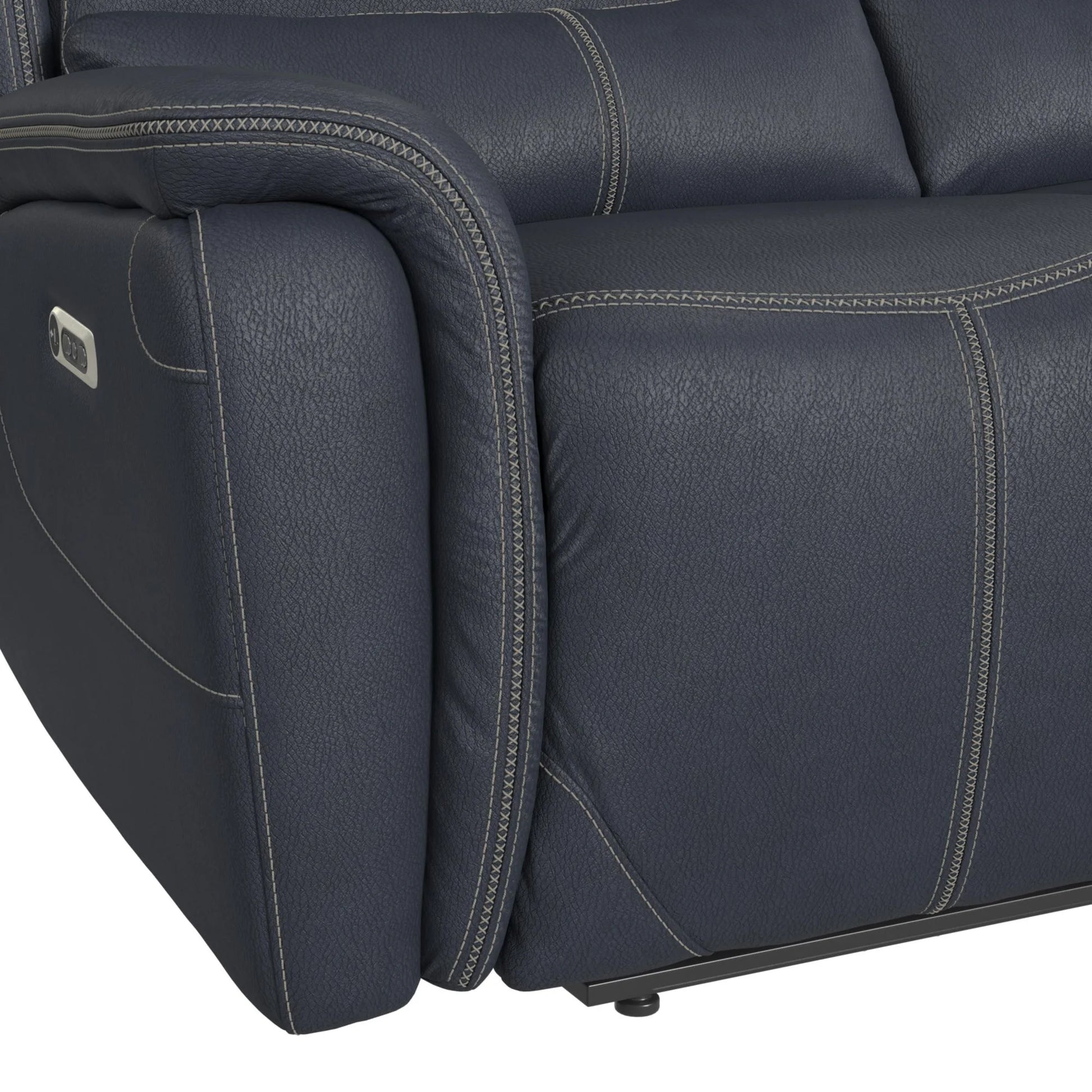 Upgrade your living room with the luxurious Aruba 2PC Living Room Set. This stunning set includes a sofa and loveseat in a beautiful deep navy upholstery that will elevate any space. Both pieces feature power motion head recliners, allowing you to relax in ultimate comfort. The loveseat also includes a convenient storage console with metal cupholders. The backs of the pieces are adorned with horizontal tufting, while the footrests feature vertical tufting for added style. With USB Type C outlets and reclining capabilities throughout, this set combines convenience with sophistication. The foam-filled cushions and spring combination ensure lasting comfort.