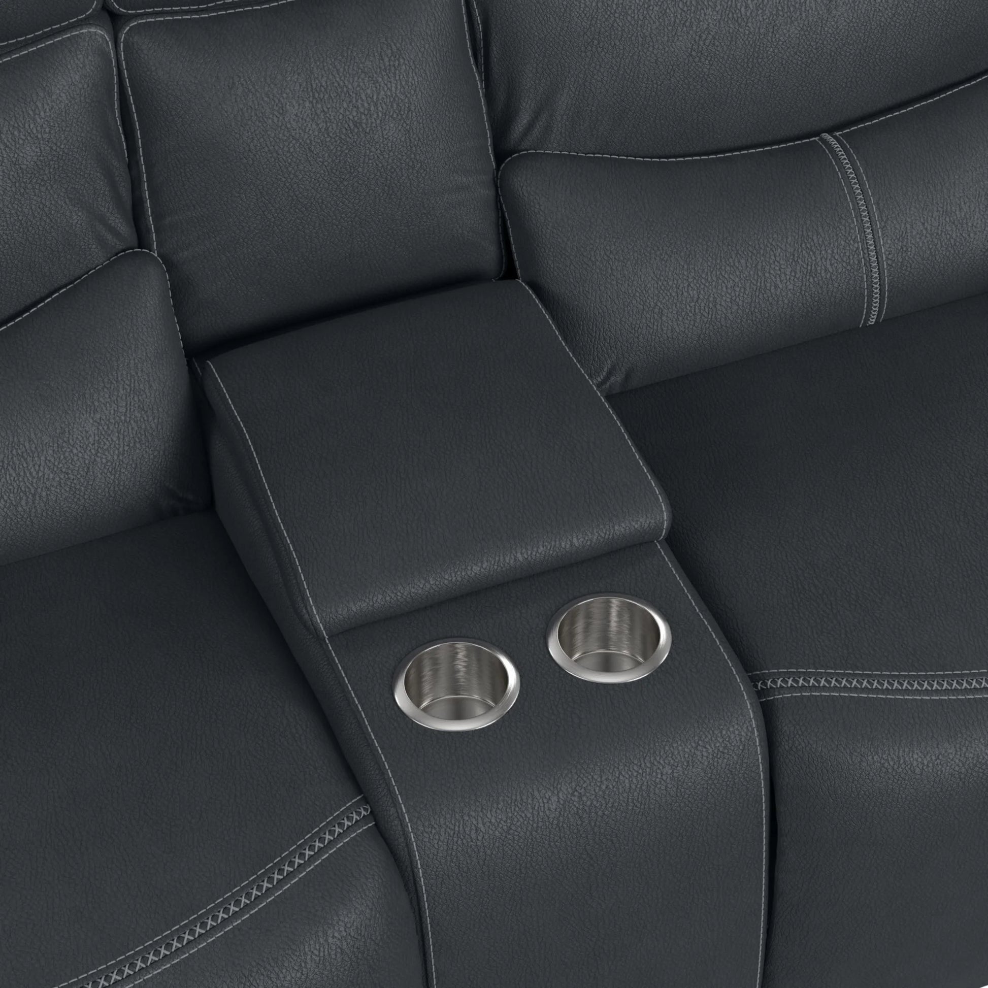 Upgrade your living room with the luxurious Aruba Power Motion Loveseat. This stunning piece features durable faux leather upholstery that will elevate any space with its subtle refinery. Power recline and head rest motion allow you to relax in ultimate comfort, and amply cushioned pillow top arms are ideal for lounging. A controller with a USB outlet adds a touch of modern practicality, while a convenient storage console with 2 metal cupholders helps keep your living room essentials comfortably within reach. For a refined addition to your living space, the Aruba Power Motion Loveseat effortlessly combines convenience and sophistication.
