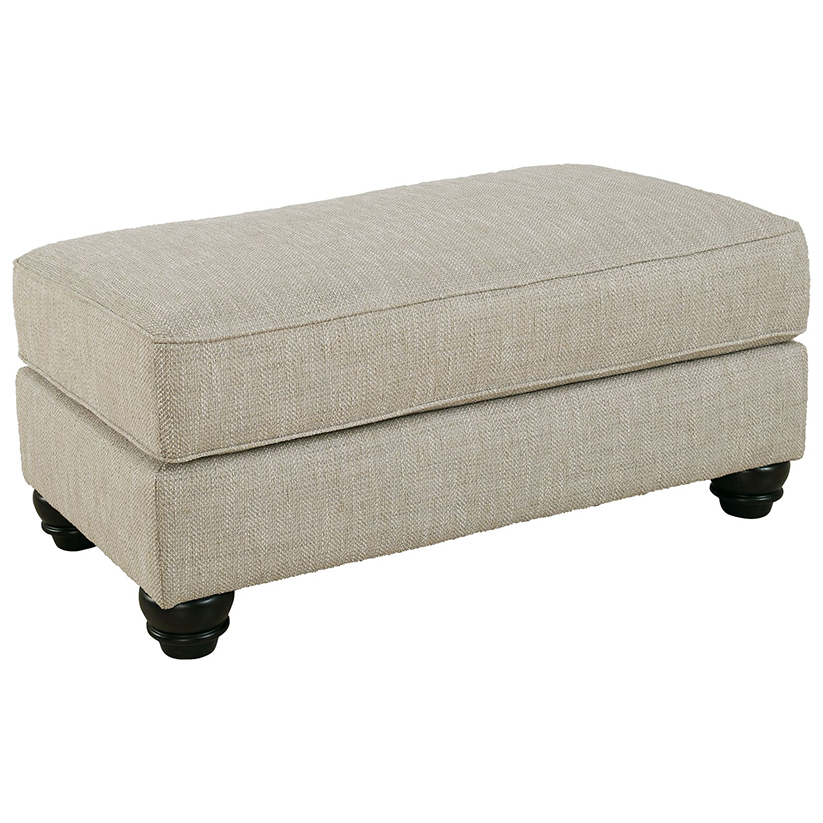 Blending comfort and style, this ottoman cradles your tired feet at the end of a long day. The distinctive look of heavily textured fabric in a light, neutral hue is enhanced by lighter flax peeking through. Whether paired with another piece or used on its own, this ottoman looks and feels right at home.