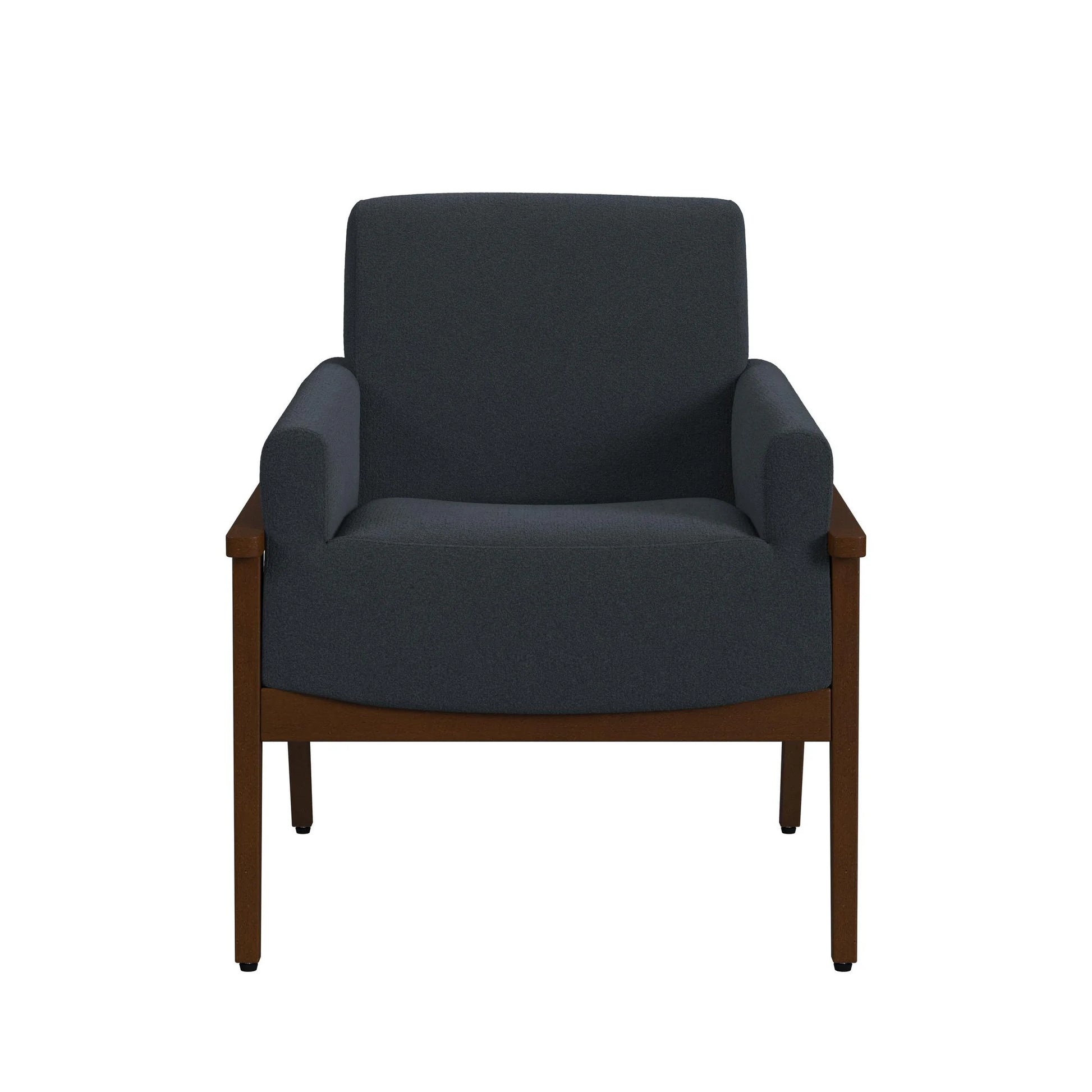 Accent your home with the swanky mid-century modern style of the Ava Accent Chair. Built with durability in mind, this piece is constructed of quality solid wood framing, durable polyester upholstery, and choice pocket coil seating, ensuring longevity throughout regular use. The exposed wood frame in a rich cherry finish highlights skillful craftsmanship, perfectly highlighting the clean lines formed by the knife-edged cushions. For an accent chair that is as uniquely stylish as it is skillfully designed, the Ava Chair delivers.