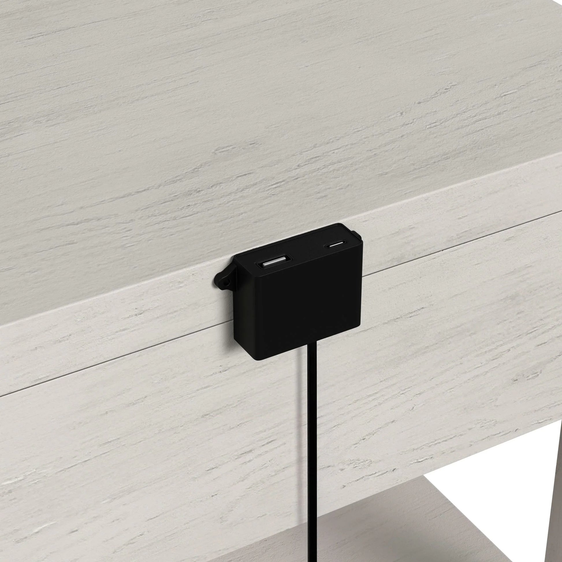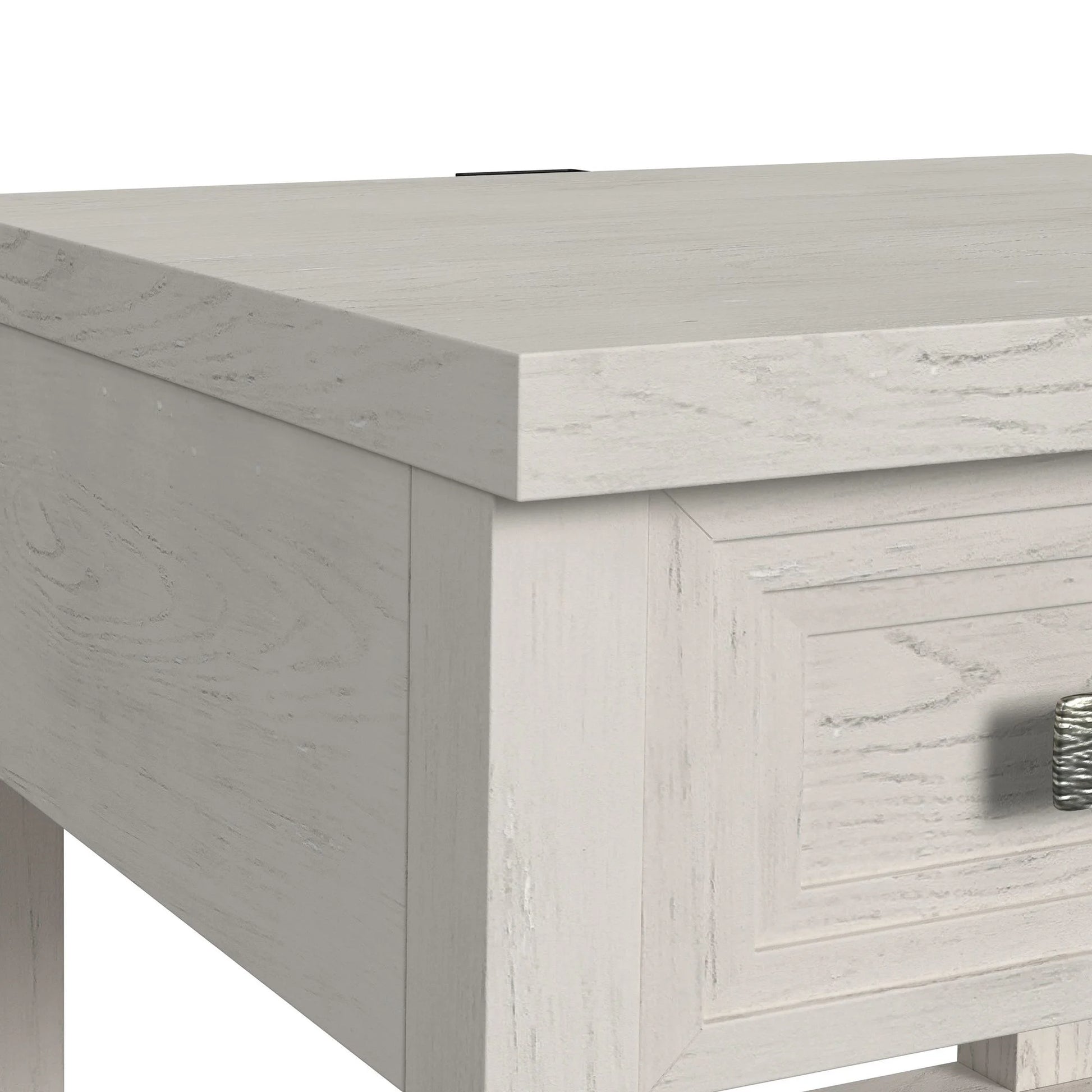 Accent your home with the transitional style of the Avalanche 3 Piece Occasional Table Set. Constructed with durable solid and engineered wood, the tabletops spacious surfaces are complemented by equally broad open shelves, extending your storage and display options. Designed for practical use, the end tables are conveniently equipped with USB ports and functional, felt lined drawers made with skillful dovetailing, while the coffee table features casters designed to protect flooring and ease movement when repositioning this piece. The Avalanche 3 Piece Occasional Table Set is perfect for adding a sleek and stylish touch to your living space.