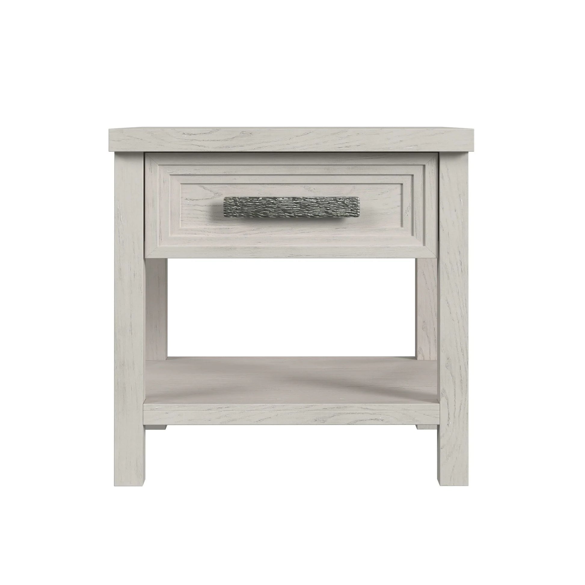 Define your living space with the transitional style of the Avalanche End Table. Constructed of quality solid and engineered wood, the tabletop broad surface is complemented by an equally spacious open shelf, effortlessly extending your storage and display options. Designed for practical use, a functional drawer adorned with a broad, textured handle features protective felt lining and skillful French and English dovetailing, while a conveniently integrated USB port lends itself to practical utility. For a sleek and stylish addition to your home, the Avalanche End Table in Antique White delivers in quality and design.