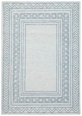 Soft, serene style. This area rug combines the comfort of hand tufted wool with the soothing feel of coastal casual aesthetics. Its detailed border design, in a palette of blue, ivory and gray, welcomes with relaxed character.