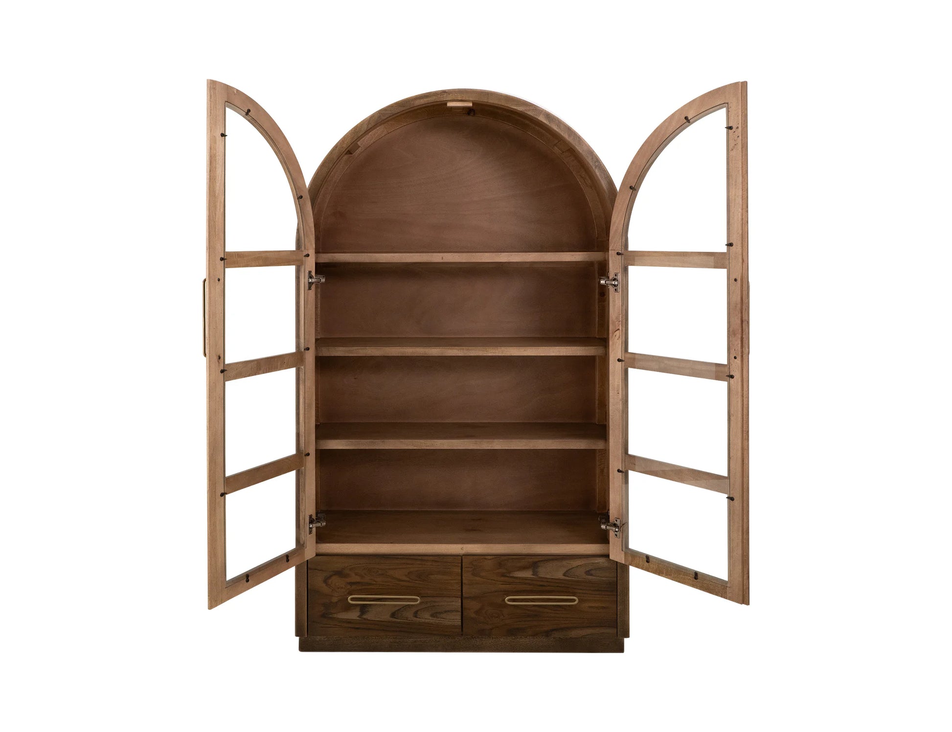 2 Drawer & 2 Glass Doors, Cabinet. This beautifully crafted cabinet, part of the Balam Collection, is both stylish and functional. It features two glass-paneled doors that provide a clear view of the interior, making it perfect for showcasing your cherished items. Below the doors, two spacious drawers offer extra storage. The cabinet's design combines modern elegance with practicality, making it a versatile addition to any room.