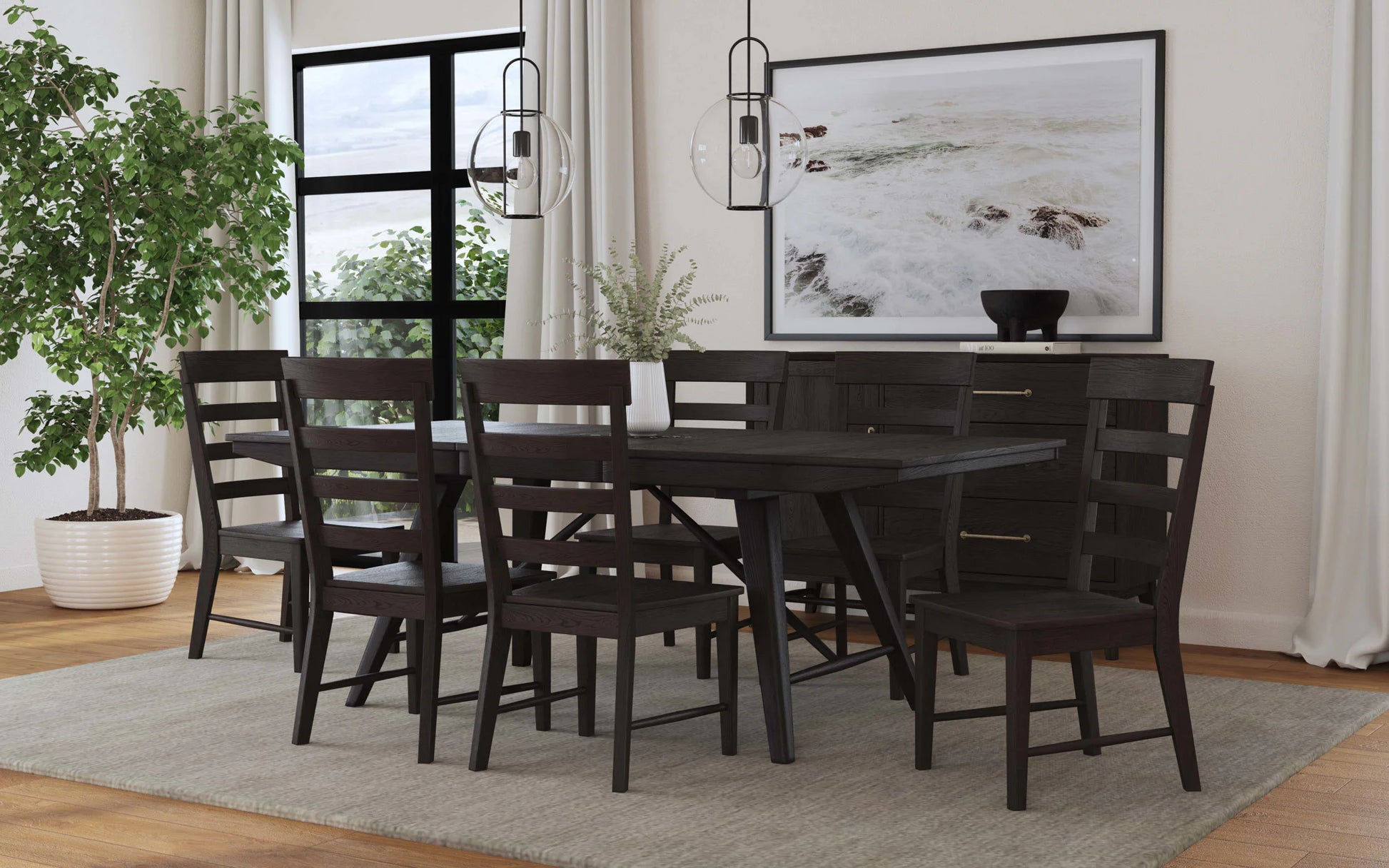 The Bayside Dining Collection offers simple lines, timeless modern style, designed to fit today’s contemporary homes. Constructed of Solid Ash and Ash Veneer. Available in two classic finishes – Black or White. The unique bar pull hardware has a light, distressed bronze finish.