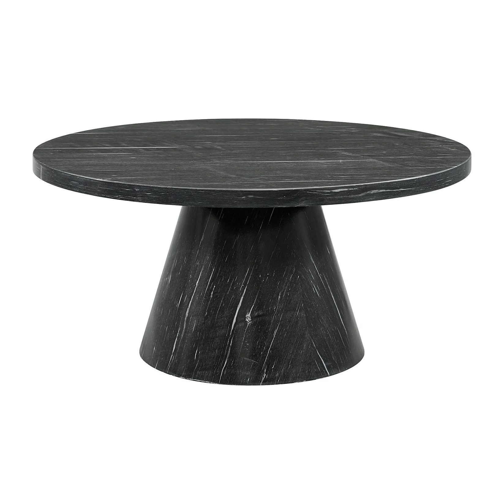A beautiful round coffee table that is a statement piece at first glance. Featuring an elegant silhouette that speaks to its contemporary style, this occasional table is finished with a marble paper veneer that adds fresh originality. Let this piece settle into your home and enhance your effortless style in either a beautiful white or grey color.