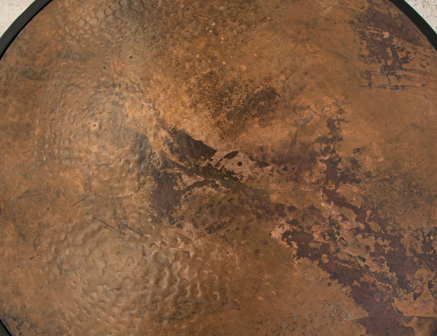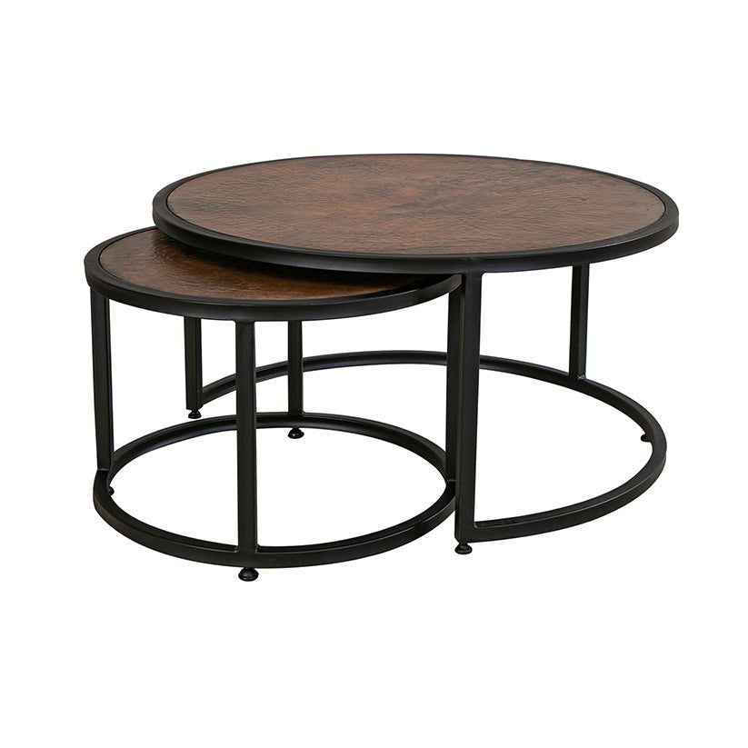 - The table tops are hand-hammered and artistically burned to create a distinct character and tonality. The copper has been treated with a bonding sealer and lacquer.