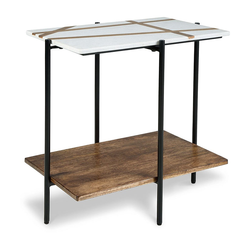 A masterclass in marrying different textures and tones, this accent table is uniquely versatile. Its luxe white marble top is decorated with wood inlay, adding vivacious character to the piece. Whether supporting a lamp or displaying decor, this table takes contemporary cool to a whole new level.