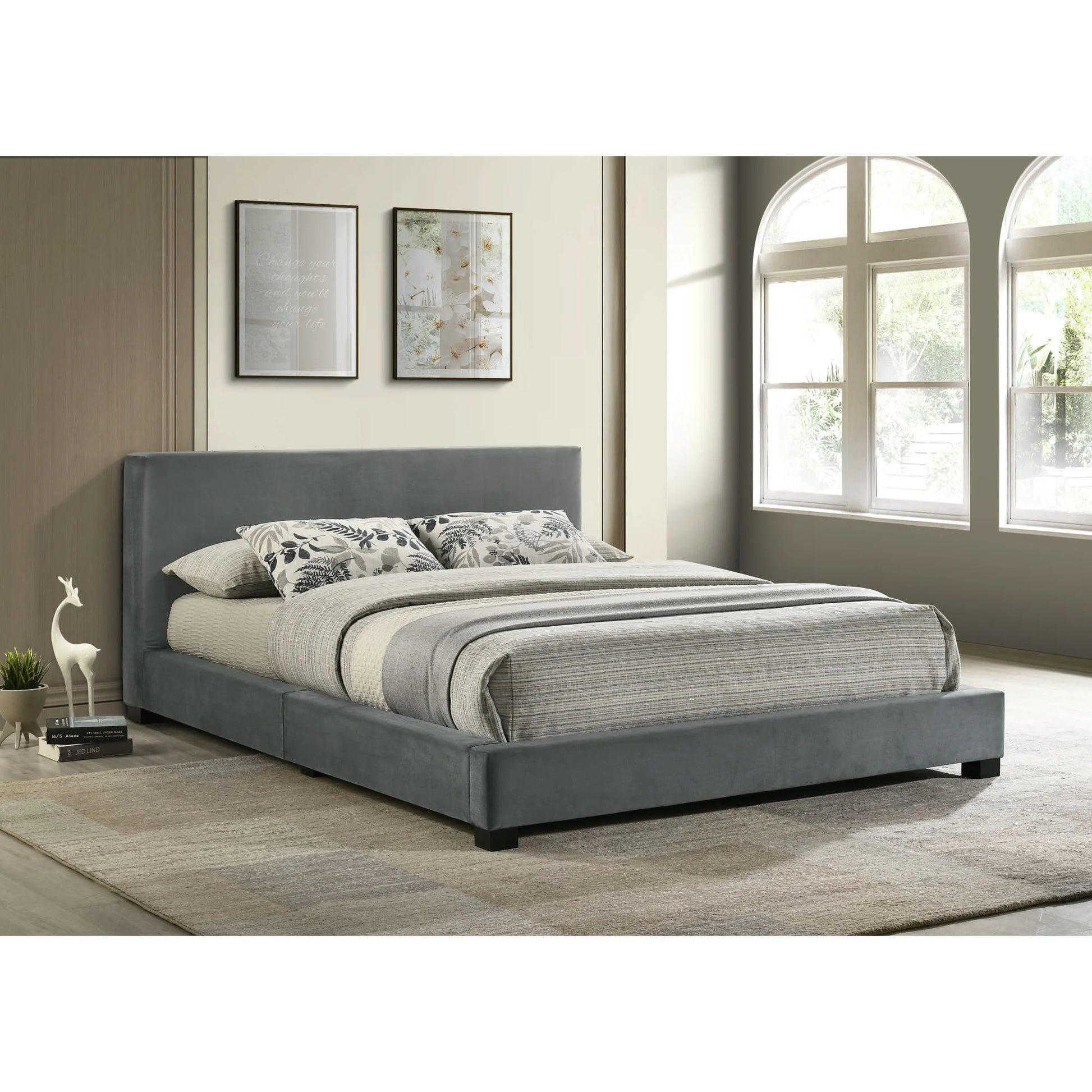 The Brookhaven Full Upholstered Bed is a tastefully refined addition to your bedroom. A minimalistic, low profile of clean lines allows this piece to seamlessly blend into various decor styles, enhancing its versatility. Luxe, velvet upholstery enveloping a foam cushioned frame maximizes comfort without sacrificing style, while 12 roll-out slats and L-hook rails mark thoughtful design by simplifying assembly and enhancing safety. For an understated, sturdy, and modern addition to your bedroom, the Brookhaven Full Upholstered Bed satisfies on all fronts.