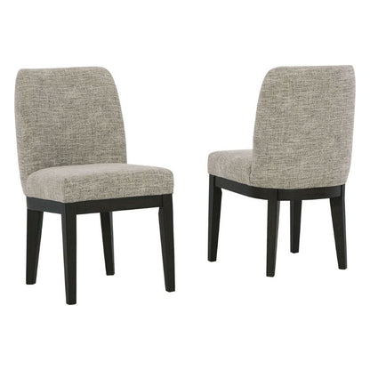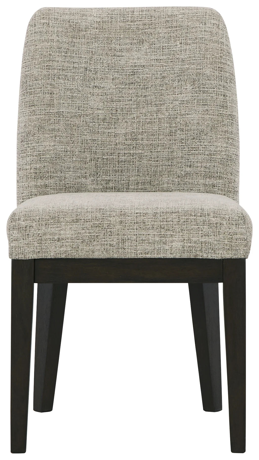 Dressed to thrill, this simply stunning armless dining chair offers a high-design look at a down-to-earth price. Ultra sleek lines are accentuated with a dark waxy brown oak-tone finish that’s so easy on the eyes. Suitably upholstered in a tweed-like neutral fabric, the softly contoured back design is tailor-made for comfort. Whether it's part of a dining arrangement or used as extra seating, it has a timeless look that’s made to last.
