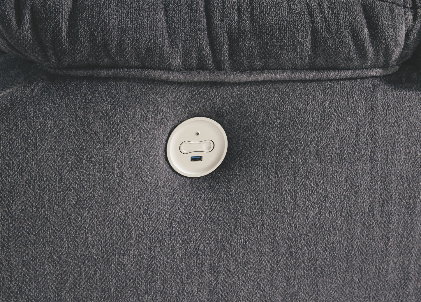 If highly contemporary looks and a heavenly feel sit well with you, rest your eyes on this power rocker recliner. Padded velvet upholstery has a plush high pile that's so soft to the touch. Jumbo contrast stitching adds fashion-forward flair, while radius cut arm frame incorporates cool, curvaceous interest. At your fingertips: one-touch power control with a zero-draw USB plug-in that’s not only convenient but also energy efficient. When it comes to high style at a down-to-earth price, this power recliner really brings it home.