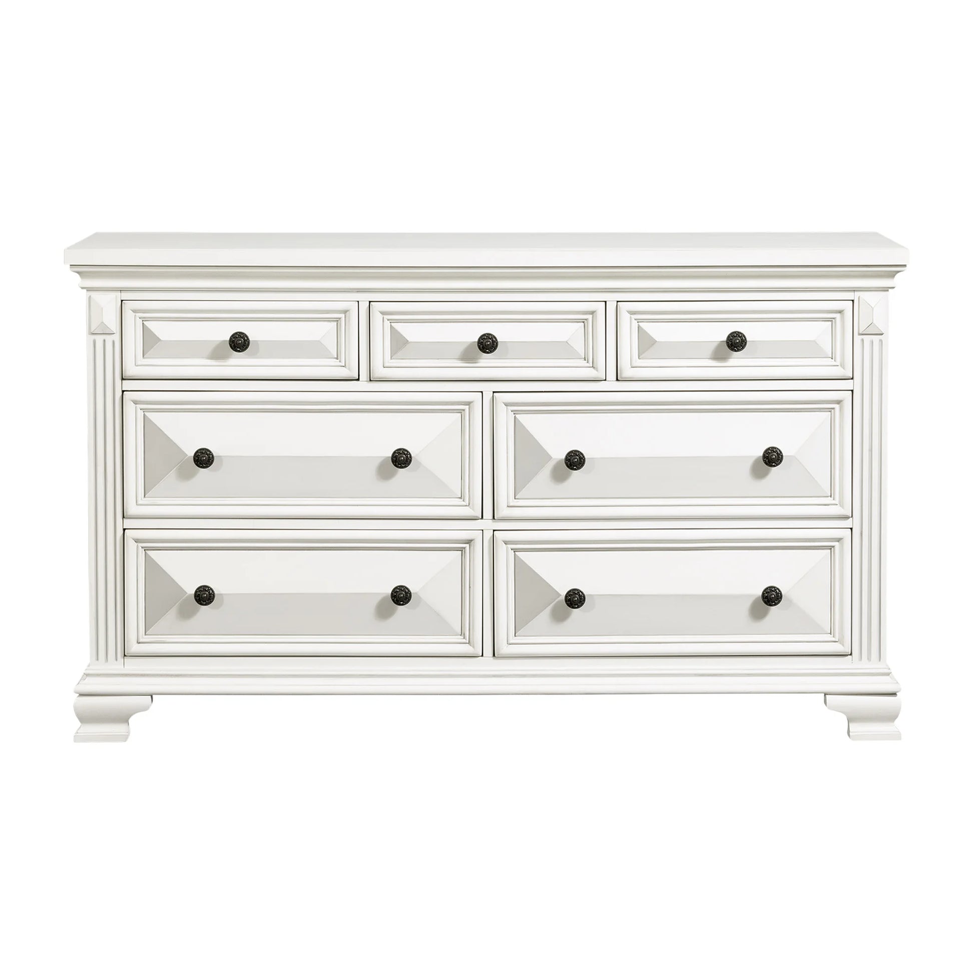 The Calloway 7-Drawer Dresser is the perfect addition to your bedroom! This horizonal dresser comes with seven, spacious drawers, more than enough storage space to store away your belongings. The top drawers are felt lined, protecting your more delicate belongings. The bottom drawers are cedar lined and feature a dust proofing layer to help protect your clothes. Raised drawer fronts add an extra element of design to this already stunning set. The dark metal finish hardware makes this transitional group a staple in your home for years to come.