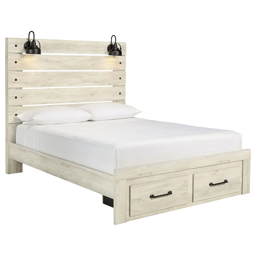 Cambeck - Whitewash - Queen Panel Bed With 2 Storage Drawers