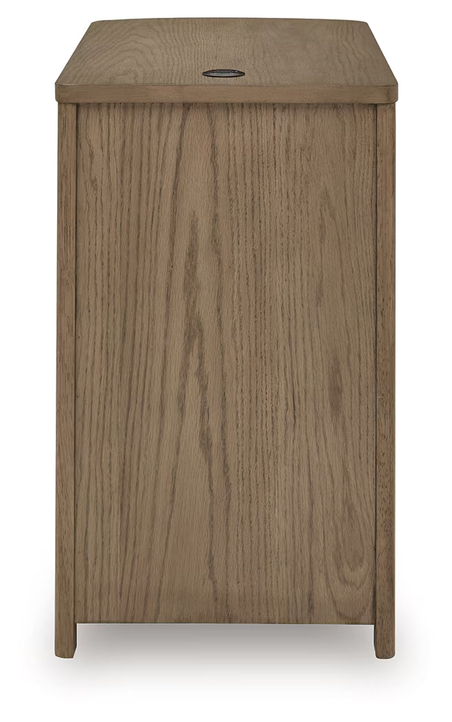 This chairside end table elevates your living room with both sleek style and must-have modern function. Reeded detailing lends a contemporary appeal, while subtly integrated drawers stow essentials with ease. USB ports round out the design, allowing you to keep devices within reach while charging.