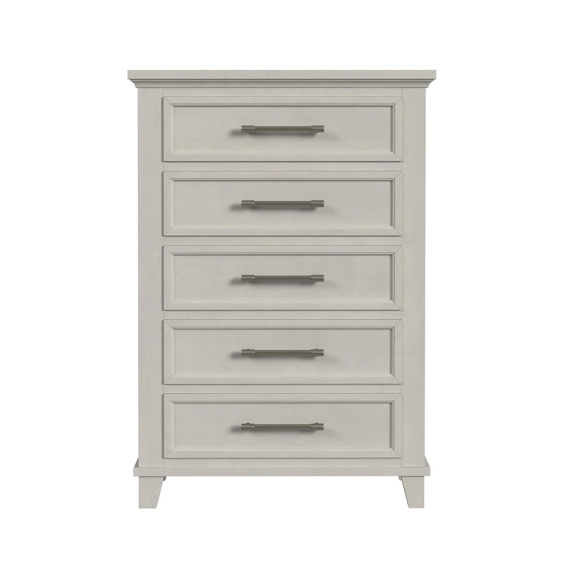 The Canterbury Chest exudes timeless elegance with its sleek smooth finish on rich cherry veneer, offering a sophisticated blend of modern and classic design. Each drawer glides effortlessly and quietly, thanks to the ball bearing drawer glides, ensuring a smooth and luxurious experience every time. Refined brushed nickel handles add a touch of sophistication, elevating the dresser's overall aesthetic. Stylish inset panel fronts provide captivating visual appeal, making this chest a stunning focal point in any bedroom. Completing the design are the sophisticated beveled edges that add an extra layer of charm and refinement. The Canterbury Chest is the perfect blend of functionality and elegance, bringing a sense of style and luxury to your living space.