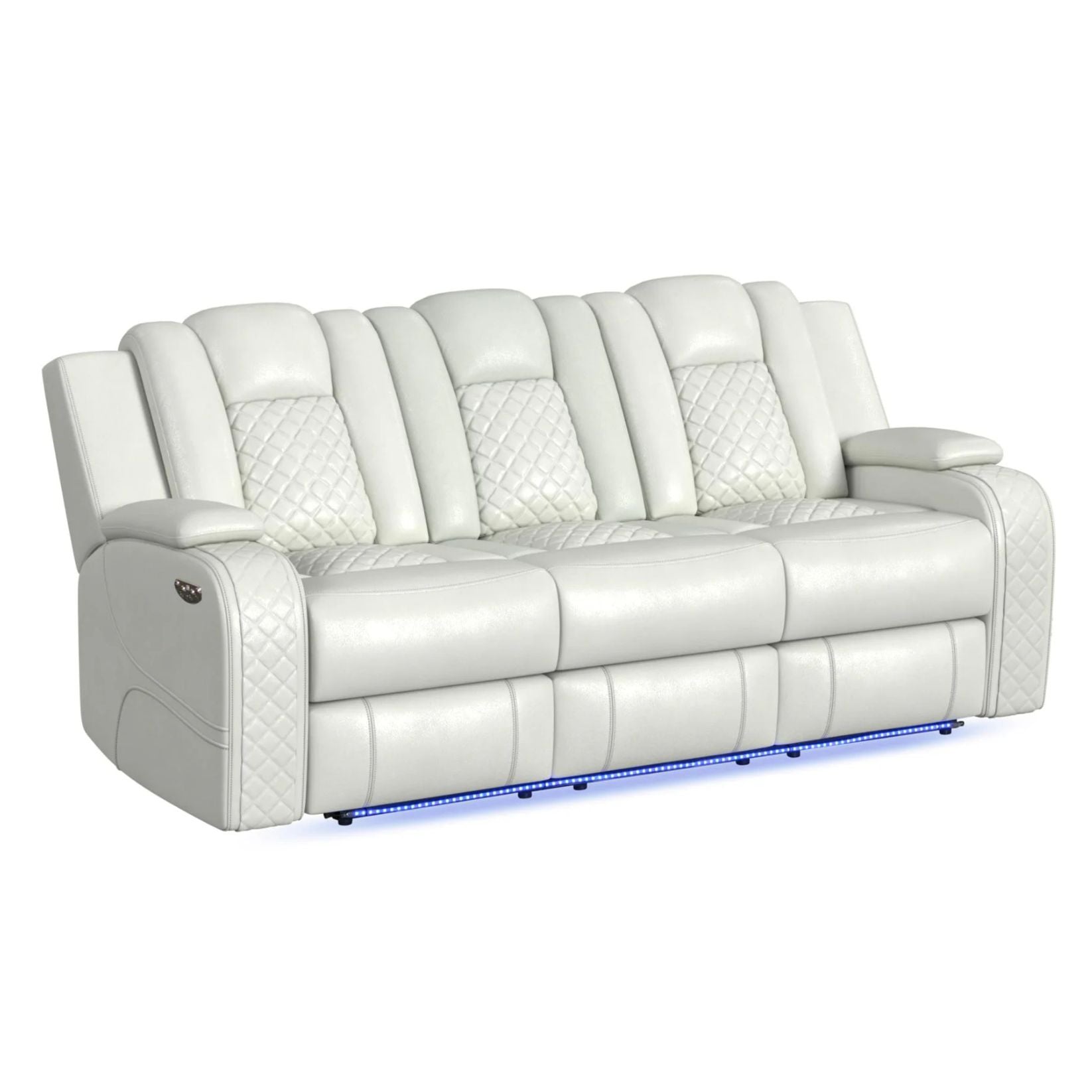 Carlo - Power Motion Sofa With Power Headrest, Dropdown Table, Power Strip, LED And Reading Light - Pebble Oyster