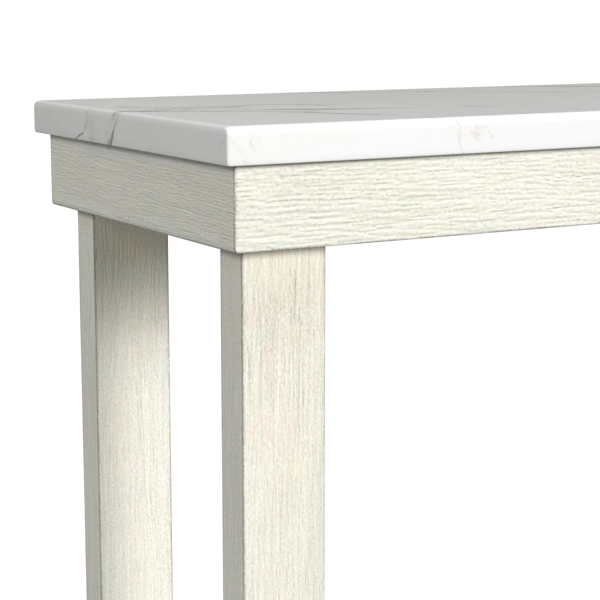 Elevate your space with the elegant Catilin Sofa Table that exudes a delicate, airy charm. The brushed white finish offers warmth, while the faux marble top adds a touch of luxury with its soft, veined detailing. Perfect for displaying your favorite décor or framed memories, this table brings a refined presence to any room. Its slender, open frame complements modern and traditional styles alike, creating a graceful balance of function and beauty. Let the Catilin Sofa Table be the perfect finishing touch that crowns your home with sophistication and elegance.