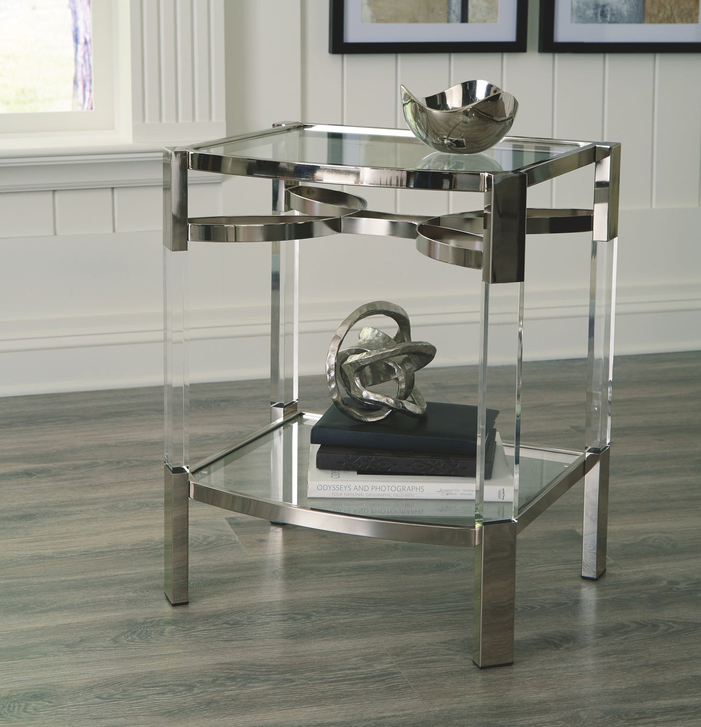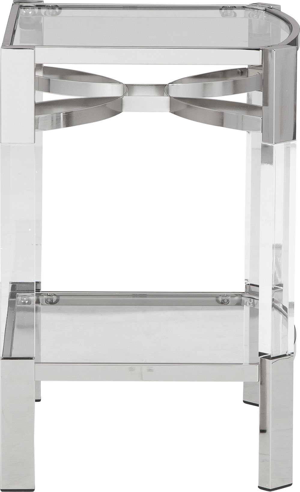 If you love the idea of total transparency, this accent table is surely a sight for sore eyes. Crafted of clear acrylic, the glass top and open glass shelf is beautifully on trend. Sleek chrome plated metal legs with clear acrylic accents add a touch of elegance to your mid-mod vibe.