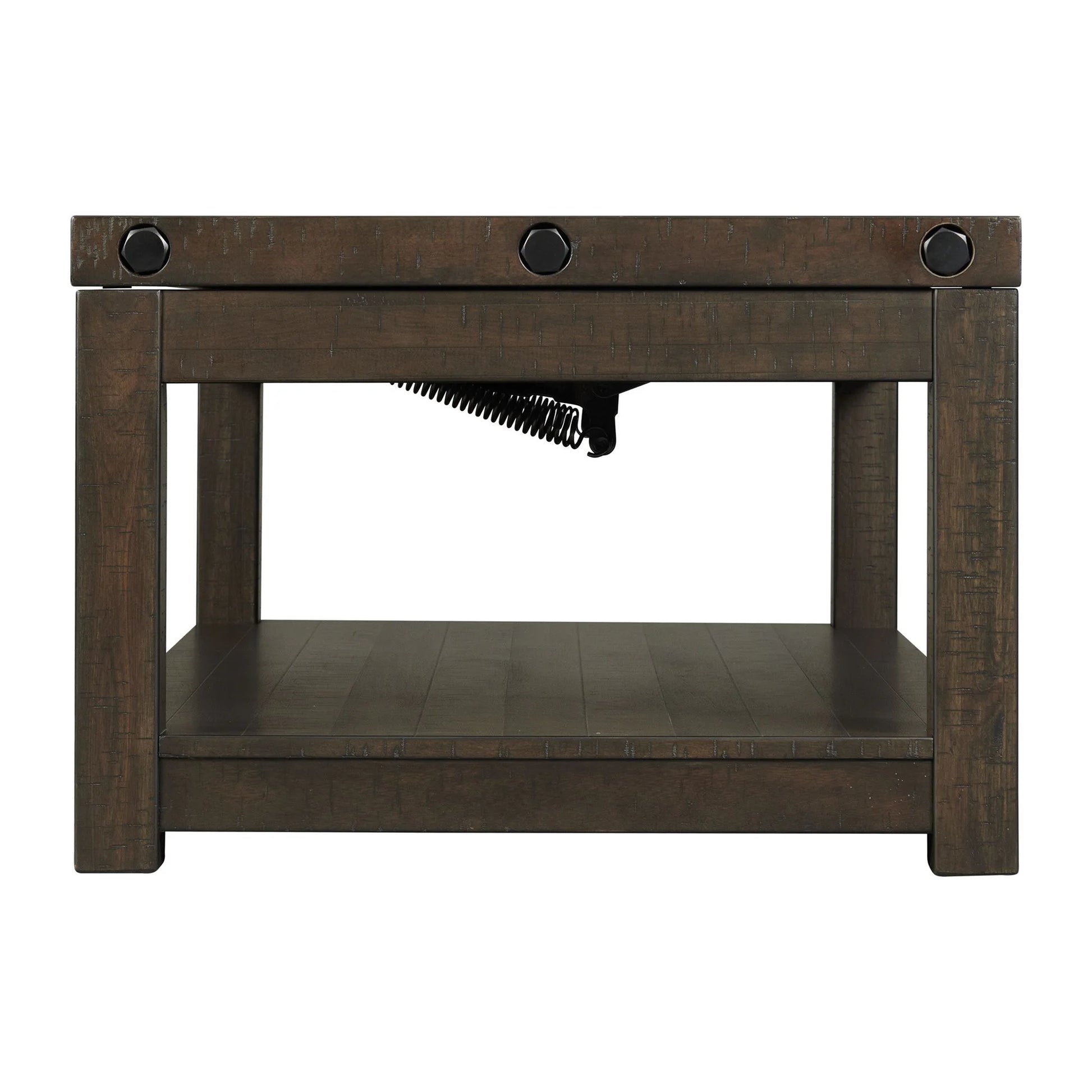 The Colorado Coffee Table with Lift Top is the perfect addition to your home! Solidly crafted in beautiful acacia and solid wood with a distressed charcoal finish. This end table has a transitional design making it perfect for traditional or contemporary aesthetics. The top lifts up and forward to showcase two hidden compartments beneath the top, perfect for tucking away your remotes and games. The lower shelf provides you additional space to place your favorite books, magazines, or display decor items. Add this beautiful coffee table to your living room to give your home an eye-catching centerpiece.