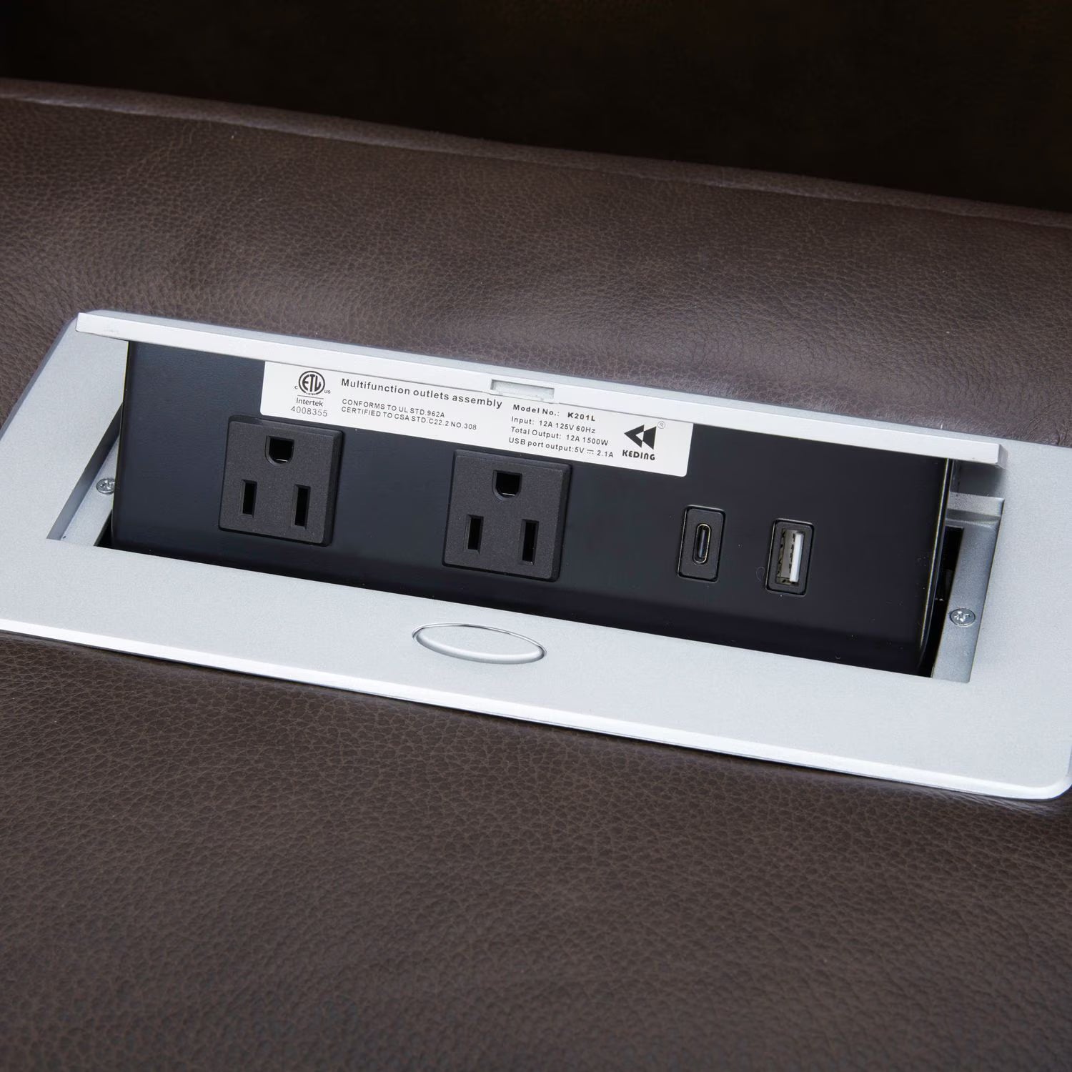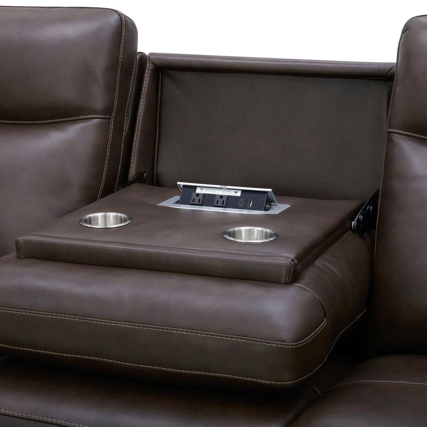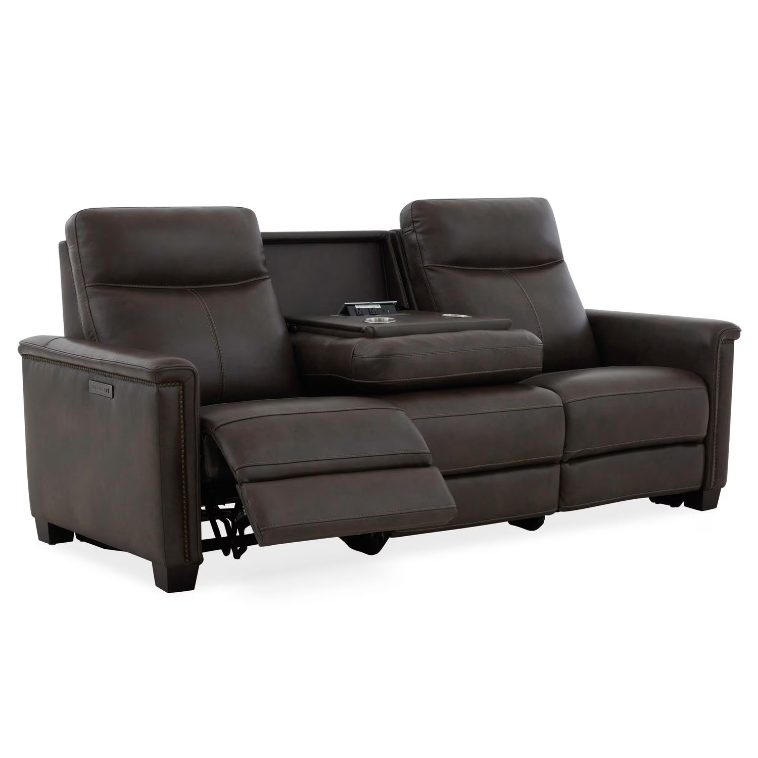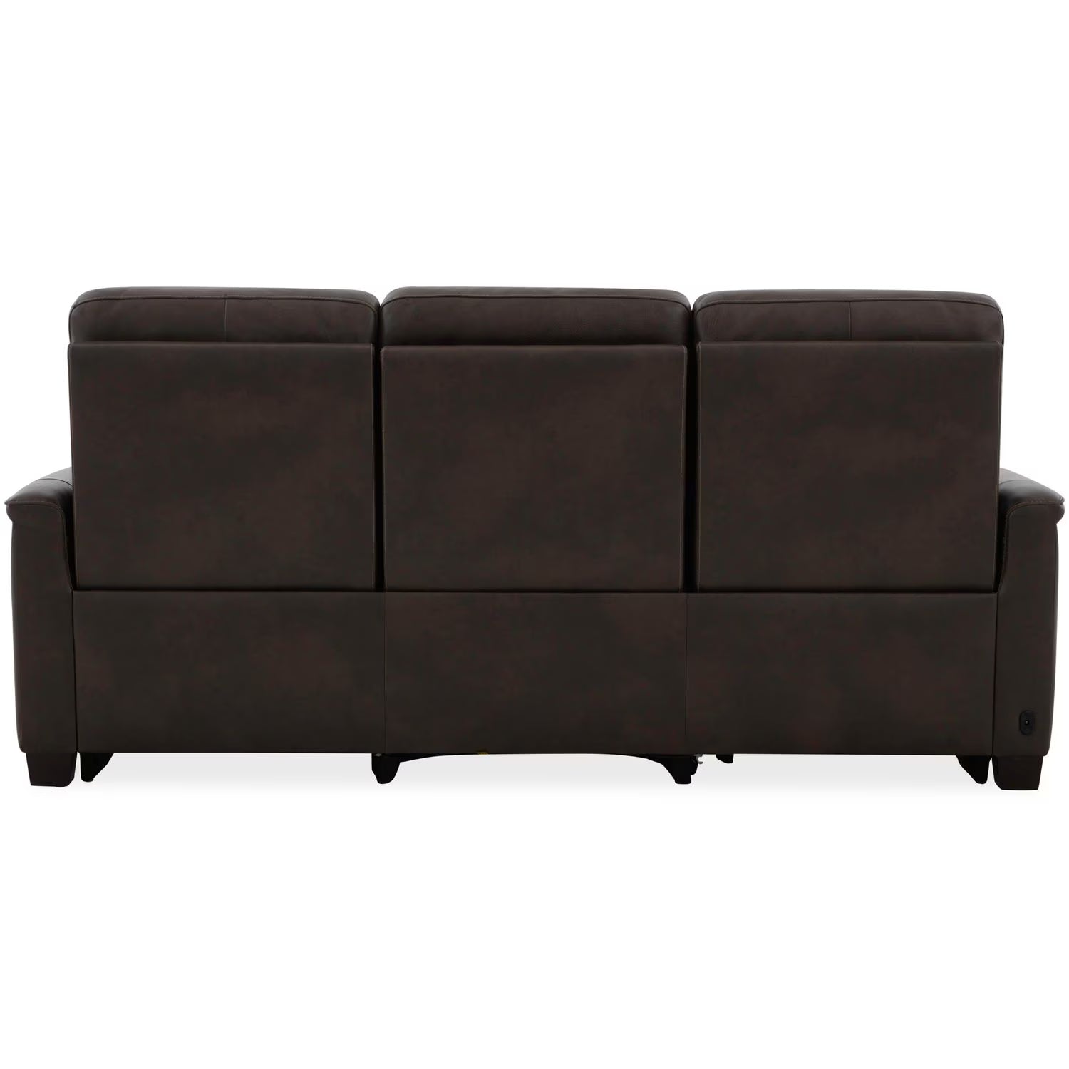 Treat yourself to high style and superior comfort with Crawford's triple power off-the-floor traditional design. Crawford includes power motion recline, a comfort-high back with power headrest, and power lumber support. Designed to emulate a stationary aesthetic, the silhouette features a fully finished back frame for 360-degree visual appeal. The slender flared arm design that is further embellished with head-to-head decorative nail trim creates an overall scale suitable for small living spaces. Additional features include a drop-down table in the center back of the sofa with a hard surface, cup holders, and USB & USB-C charging ports. Crawford is available in a selection of semi-aniline leather/match applications with heavy grain texture and subtle two-tone coloration that's finished for active family environments. Let Crawford become the focal point of your living space, where relaxation meets modern technology in perfect harmony.