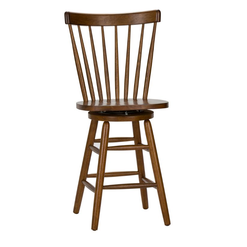 Sit in comfort and style with the Creations II swivel counter chair. Crafted of rubberwood solids, this piece features a tobacco finish, nylon chair glides to protect your flooring, a sturdy spindle back, a swivel seat, splayed legs, and is available in 24" and 30" options. The Creations dining features multiple sizes to fit your unique needs.