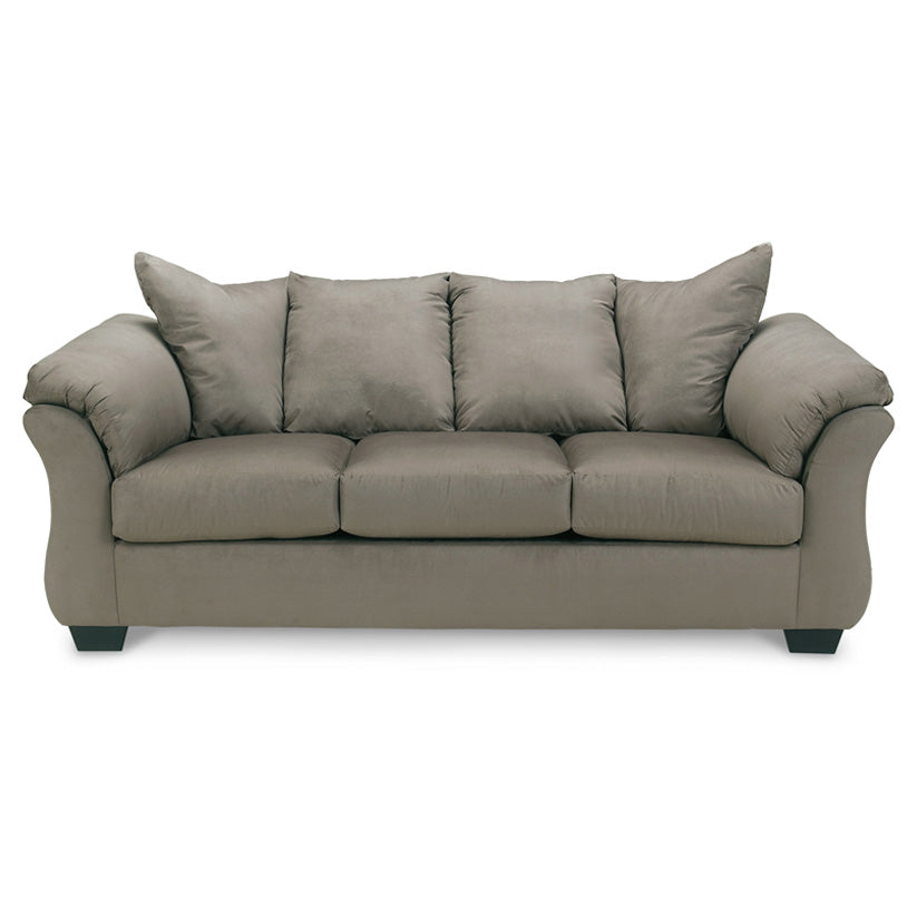 Talk about fine lines and great curves. That’s the beauty of this standout sofa—made to suit your appreciation for clean, contemporary style. A striking flared frame, comfy pillow top armrests and an ultra-soft upholstery that holds up to everyday living complete this fashion statement.