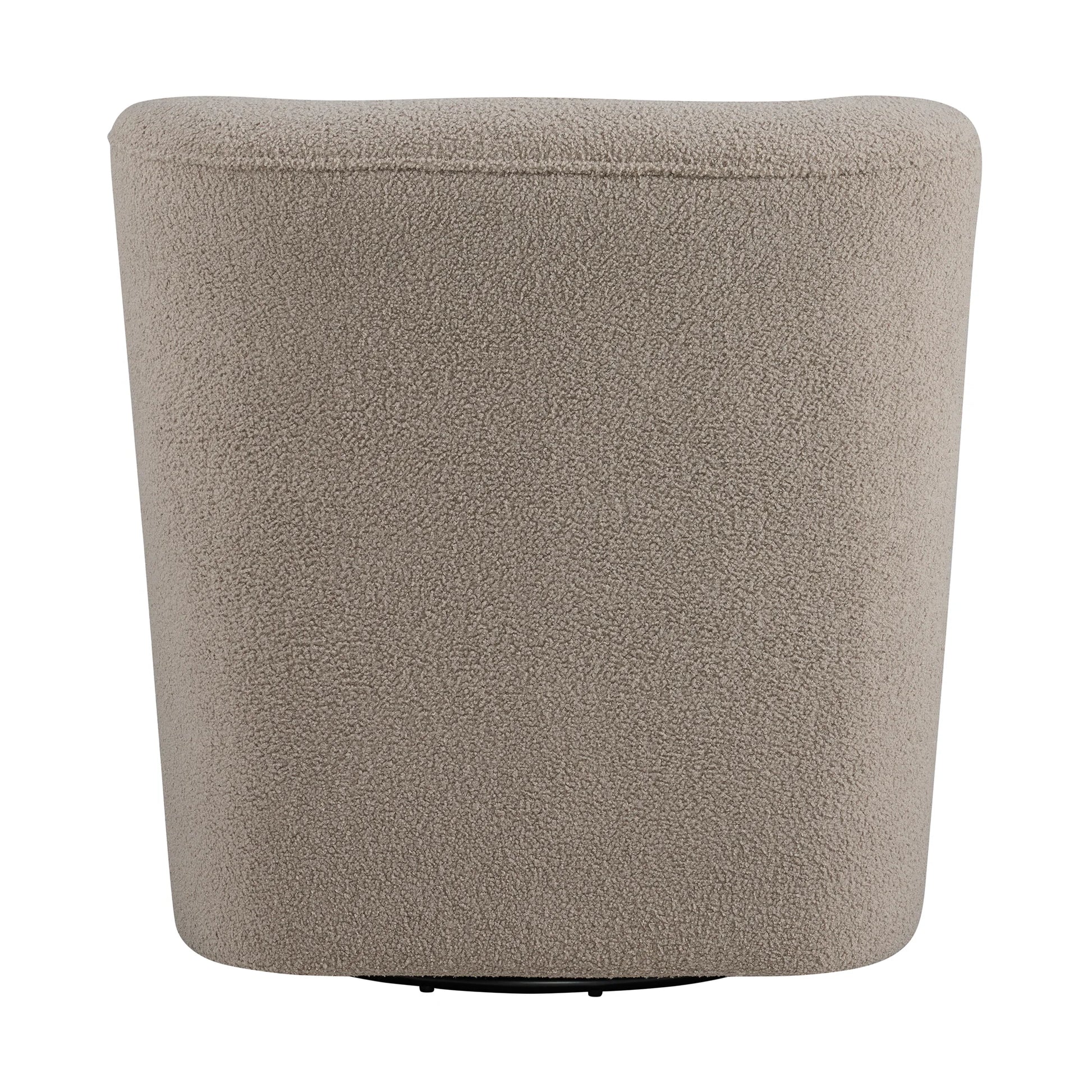 Indulge in the perfect blend of style and comfort with the Deacon Swivel Chair. Wrapped in plush boucle upholstery, this chair offers a cozy, modern aesthetic that enhances any living space. Its high backrest provides superior support, making it ideal for relaxing and unwinding after a long day. With a generously padded seat and sleek rounded armrests, every moment spent lounging feels like luxury. The 360-degree swivel base adds effortless movement and versatility, while the compact design fits seamlessly into smaller spaces without compromising on comfort or style. Elevate your home with the Deacon, where comfort meets sophistication.