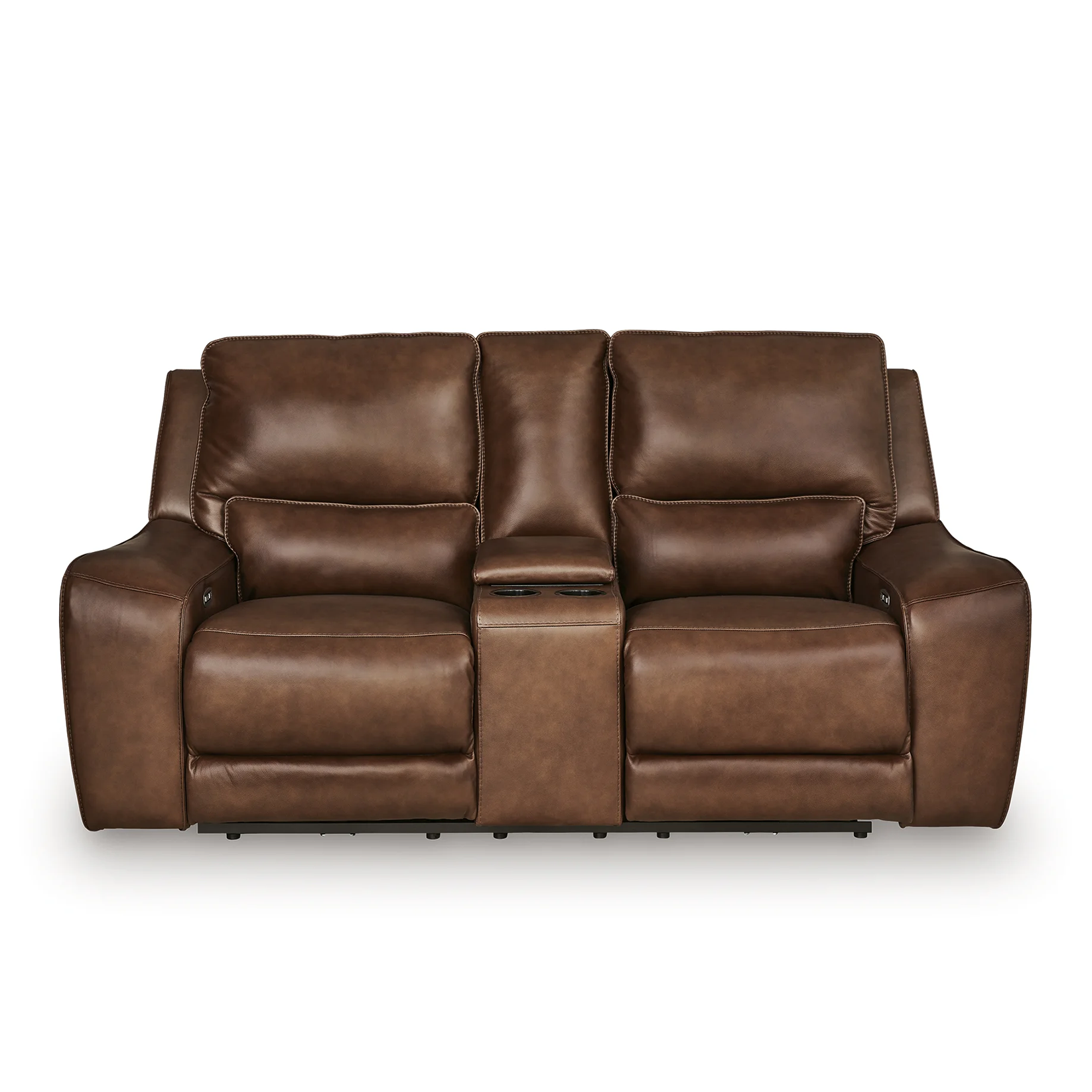 Live and lounge luxuriously. This power reclining loveseat brings an ultra-stylish flair to your home’s central hub. Its seating area is wrapped in top grain leather in a sleek neutral color, giving you a trend-right look made all the better with high-quality materials. And with the simple push of a button, you can adjust the headrests or recline to find your ideal comfort position.