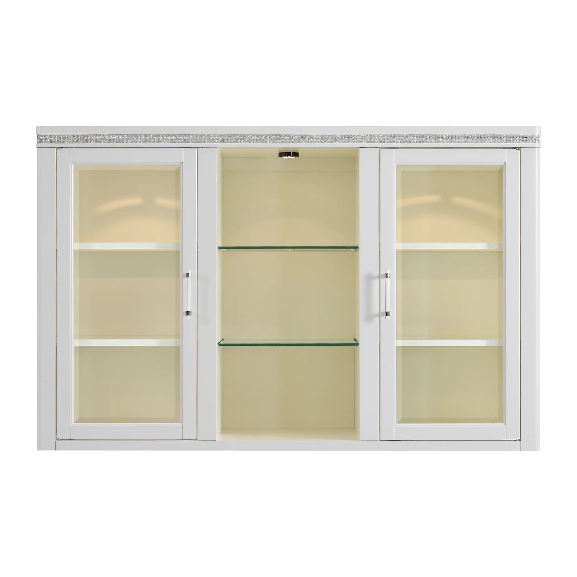 The Diedra Hutch exudes elegance and sophistication with its stunning white finish. It is a perfect dining piece for those who appreciate a modern and chic aesthetic. The glass shelves, diamond strip detail, and acrylic hardware add a touch of luxurious style and visual interest. Pair it with the Diedra Server to bring the perfect amount of functional storage with glamorous style to your home's dining room.