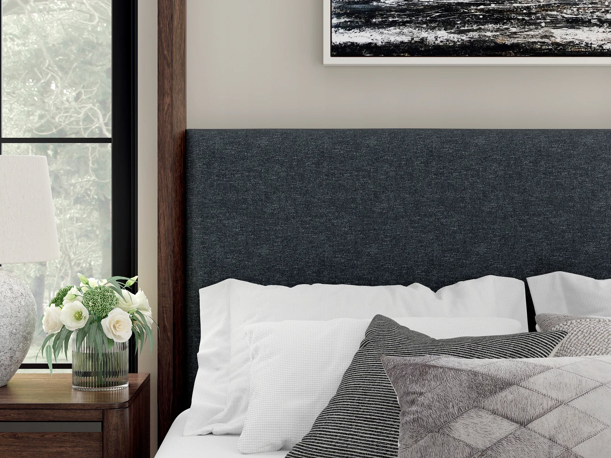 - Includes canopy, upholstered poster headboard, footboard, rails, posts and slats