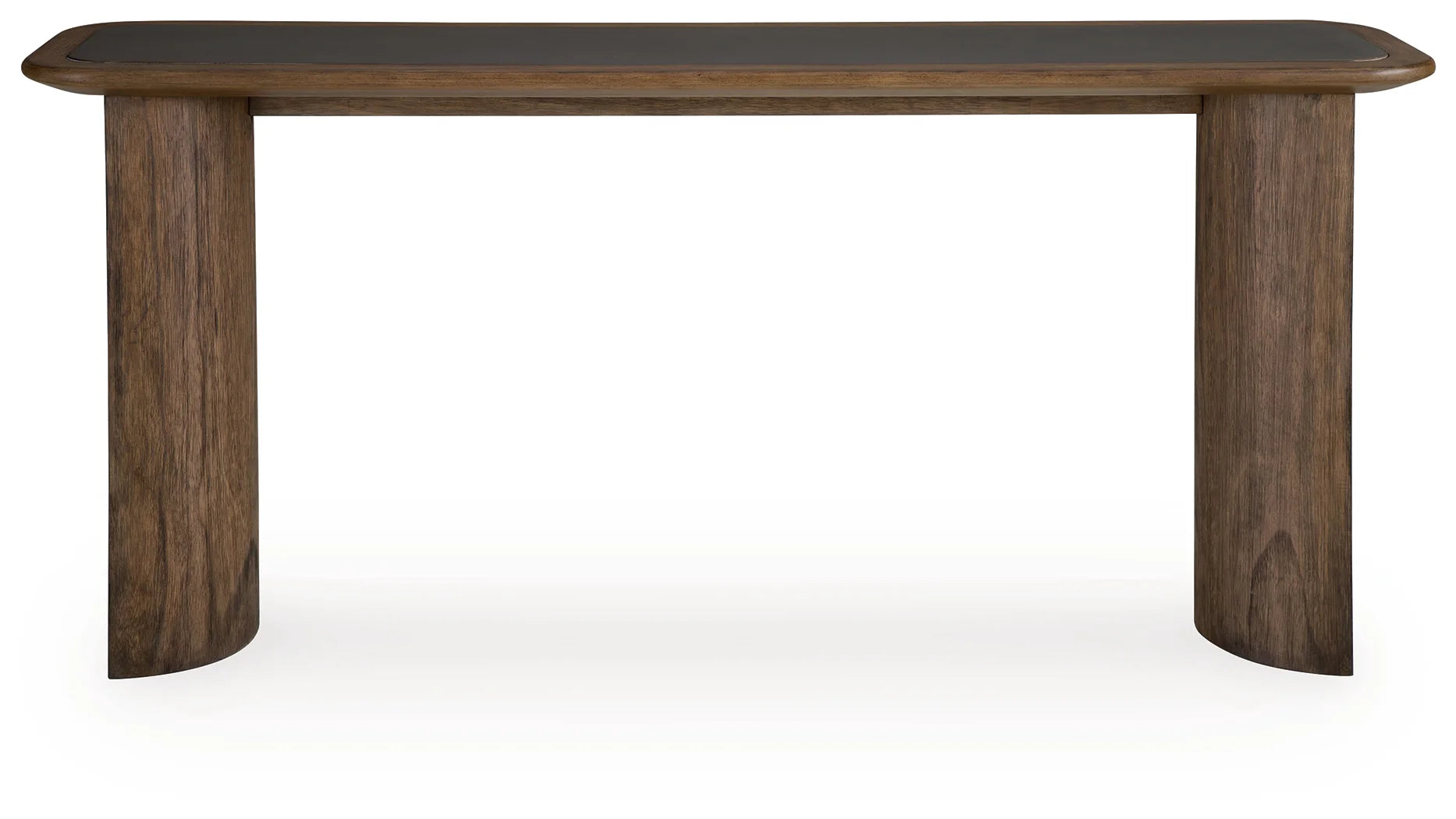 Refined design meets everyday ease with this sofa table. A warm brown wood-tone finish beautifully frames the dark faux cement top, creating a sophisticated contrast that feels both modern and timeless. This streamlined piece shapes a polished focal point in your living space or entryway. And that’s how you pull your space together with designer flair.