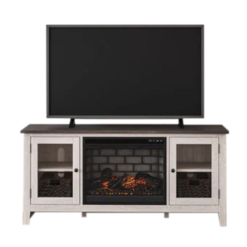 Dorrinson - White / Black / Gray - 60" TV Stand With Faux Firebrick Fireplace Insert