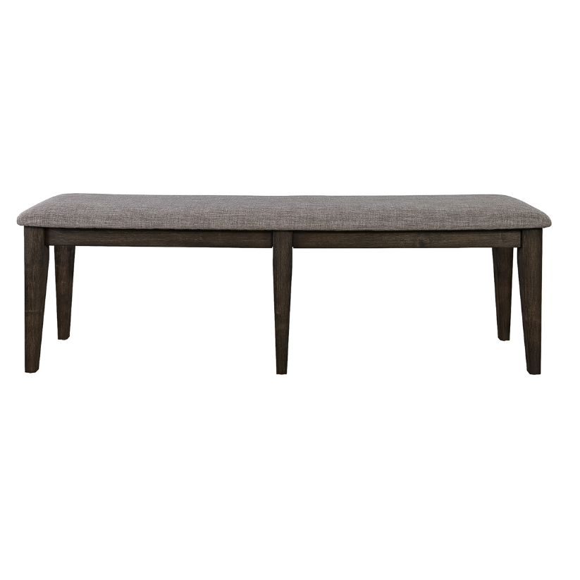 Sit in comfort and indulge in rustic style with the Double Bridge bench. Crafted of rubberwood solids, this piece features a dark chestnut finish, grey linen upholstery, nylon chair glides to protect your flooring, and beautifully tapered legs.