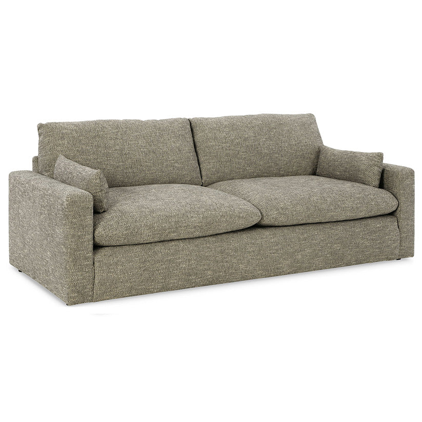 On the days when rest and relaxation seem out of reach, this sofa provides a positively plush seating experience. Its feather-fiber blend cushions invite you to float away in cloud-like comfort. Striking granite-hued upholstery and a streamlined frame grant this cozy piece a look well-suited to contemporary spaces.