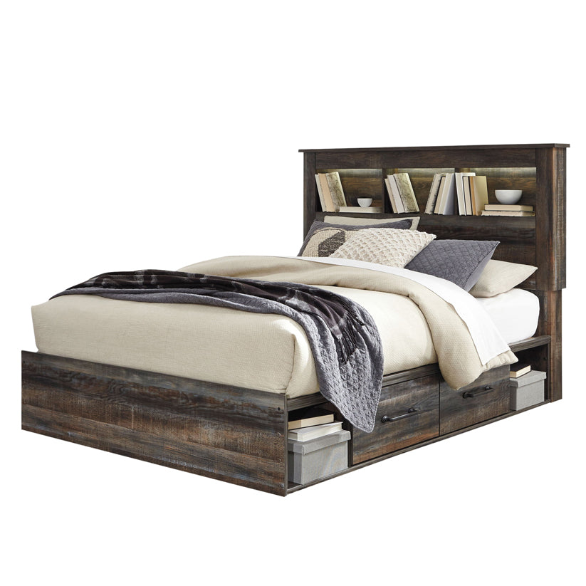 Drystan - Brown / Beige - Queen Bookcase Bed With 4 Side Drawers