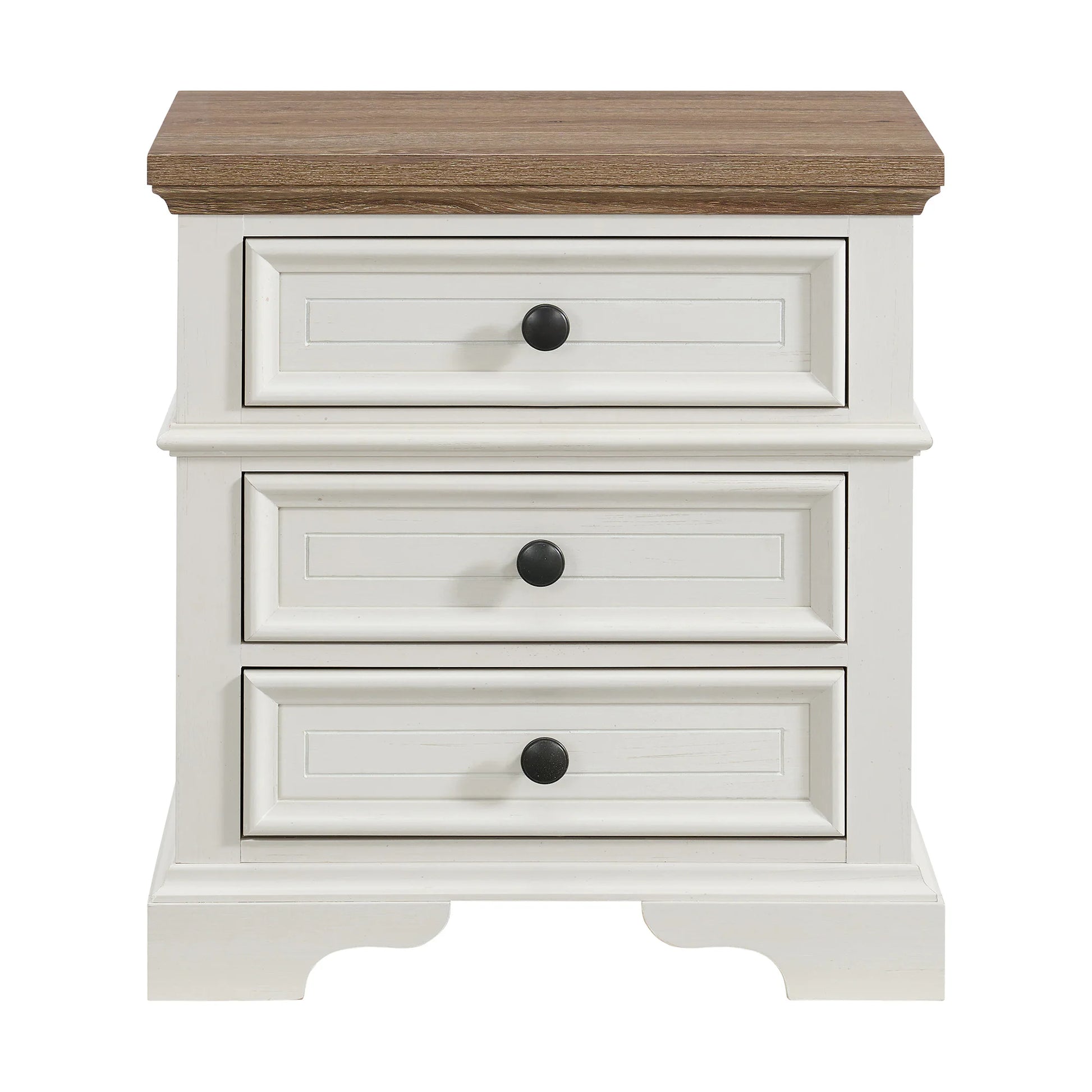 Create an inviting sanctuary with the beautifully crafted Eastwood collection that exudes timeless charm and elegance. The two-tone design with rich brown top adds depth and sophistication to this case piece. Experience practicality with a felt-lined top drawer for delicate items, smooth ball-bearing drawer guides, and durable French dovetail construction. This 3-drawer nightstand from the Eastwood collection blends intricate detail, functionality, and durability for an enchanting bedroom experience.