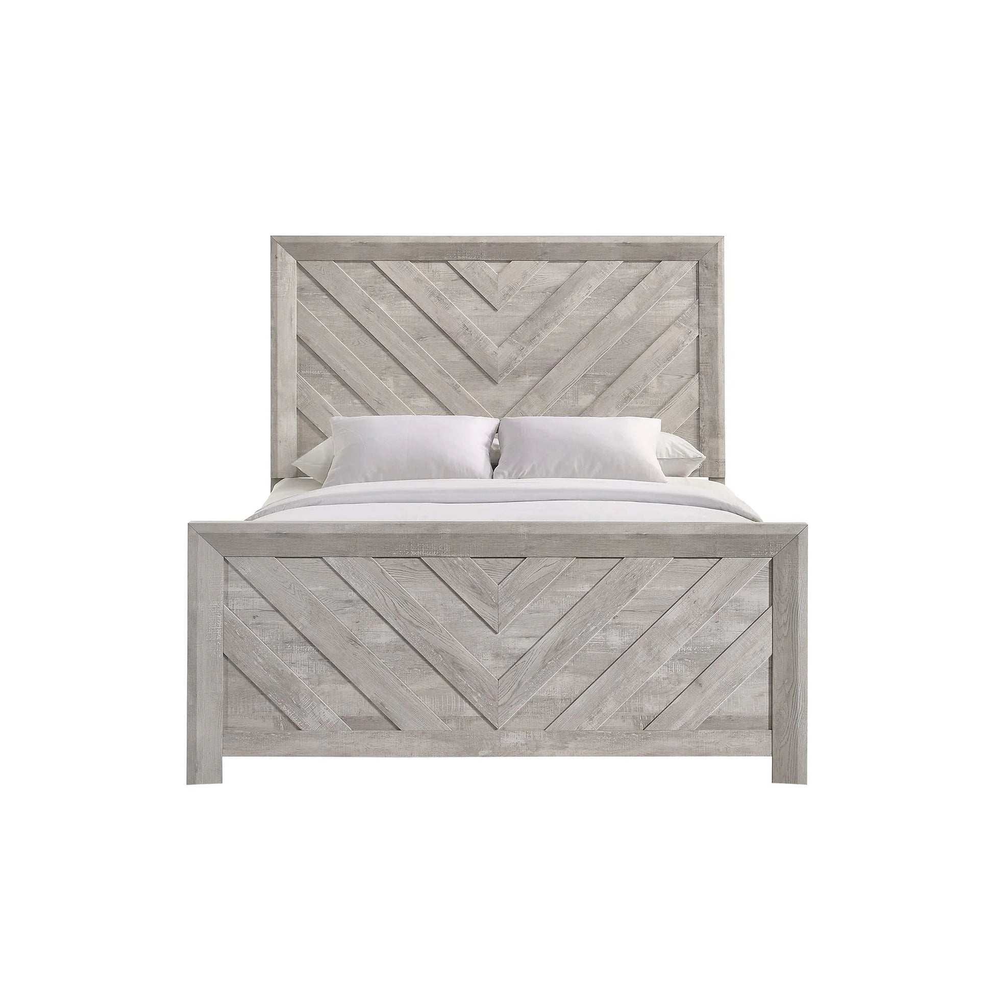 The Ellen Queen Panel Bed in White is the bed that you will be obsessed with. Crafted of solid wood, mdf, and plywood in a ash white finish. Clean and modern lines throughout. Exposed wood grain detailing and fashioned with rustic-inspired distressing for character. The Ellen Queen Panel Bed has a natural-looking aesthetic, perfect for any farmhouse or transitional style bedroom.