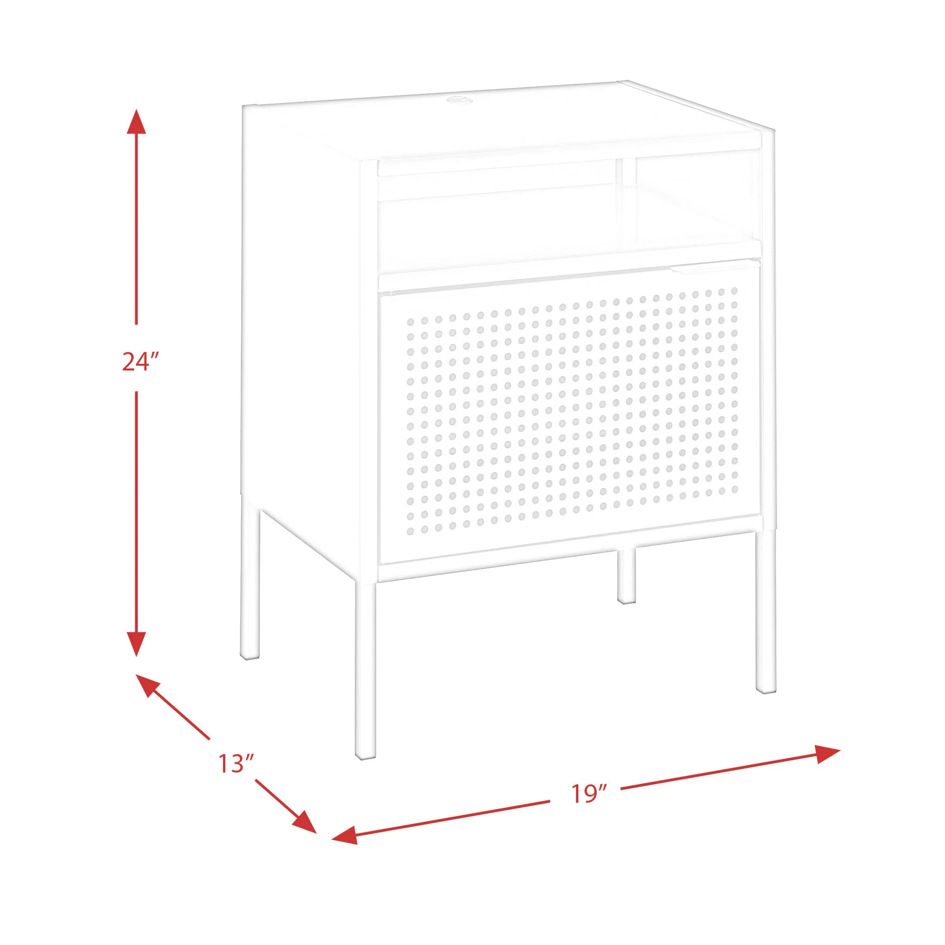 19" W x 24" H x 13" D