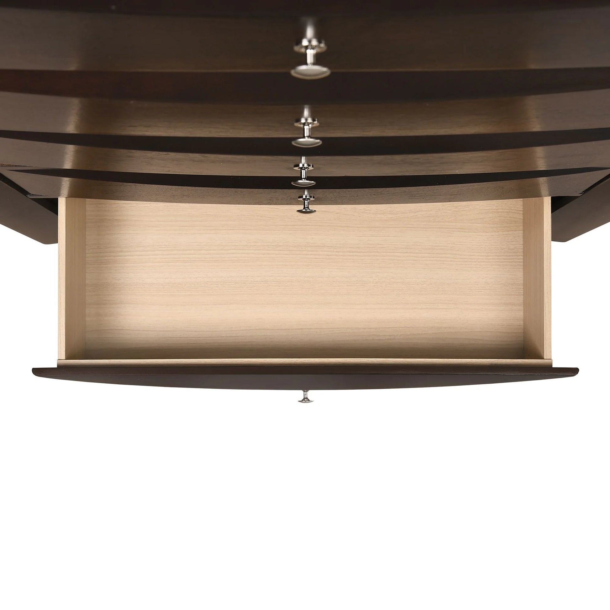 The Emily 5-Drawer Chest will add style and sophistication to any bedroom! This vertical chest comes with five spacious drawers; great for neatly storing away all of your belongings. The drawers come with metal drawer glides and built-in stoppers ensuring the functionality for everyday use. The drawer knobs are finished in a dark silver. This chest of drawers is finished in a rich, mahogany; making this bedroom chest a staple in your home for years to come.