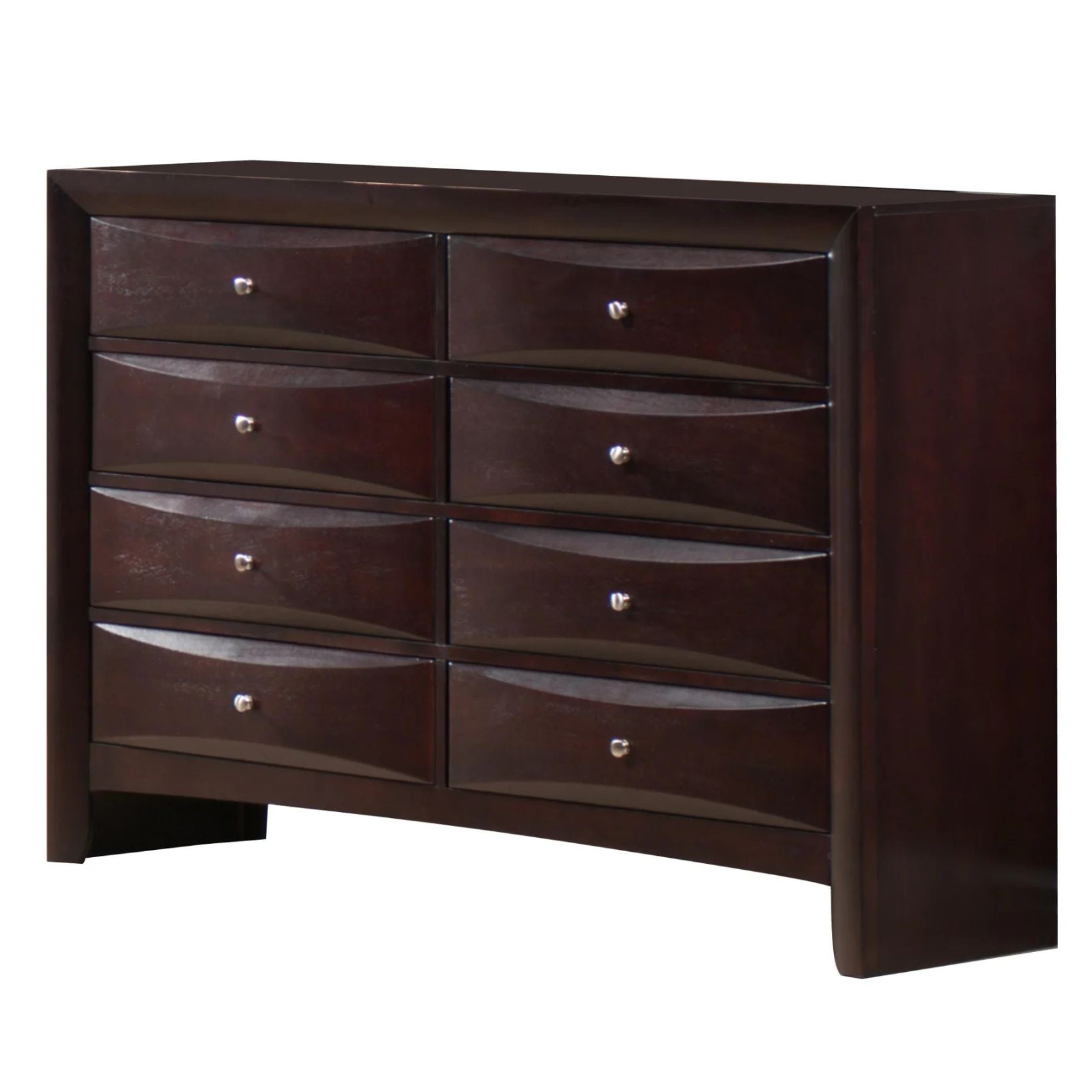 The Emily 8-Drawer Dresser is the perfect addition to your bedroom! This dresser comes with eight, spacious drawers; perfect for neatly storing away all of your belongings. The bottom drawers feature a dust proofing layer to help protect your belongings. Silver finish metal drawer knobs complete the look of the drawer fronts. The transitional, rich mahogany finish will pair beautifully with any existing decor you have. Sleek, clean lines make this contemporary design a staple in your home year after year.