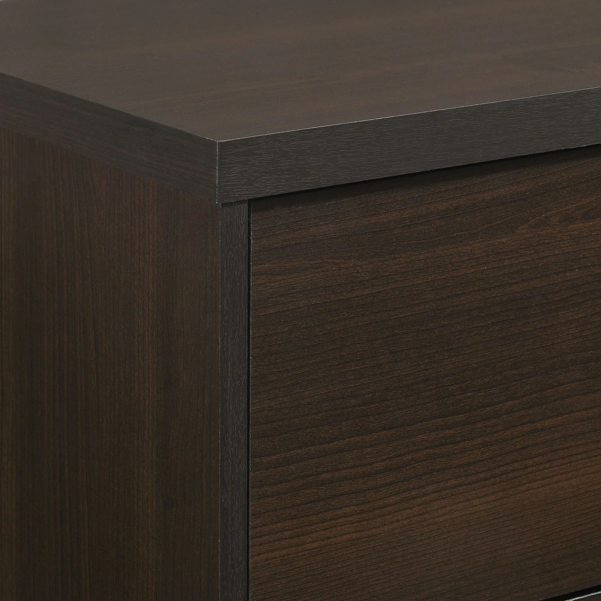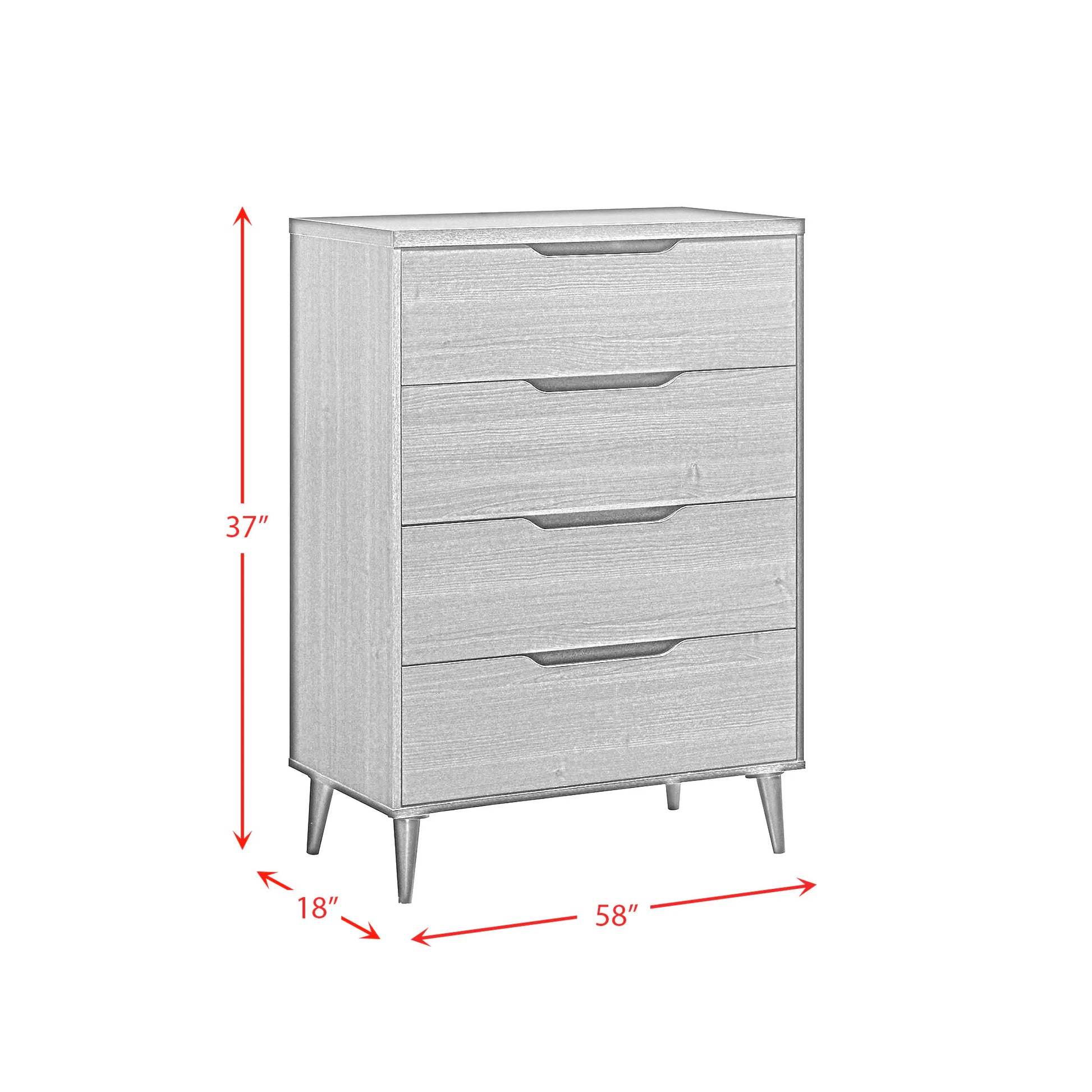Enhance your bedroom with the sleek and modern Ernesto Chest, designed to offer both style and functionality. Featuring four spacious drawers, this chest provides ample storage for all your essentials. The unique cutout drawer handles add a contemporary touch, while the rich espresso finish showcases beautiful wood grain detailing. Supported by angled legs, the Ernesto Chest offers a stable and stylish base that complements any room. With interlock drawers for added durability, this piece effortlessly combines modern aesthetics with practical design, making it a perfect addition to your home.
