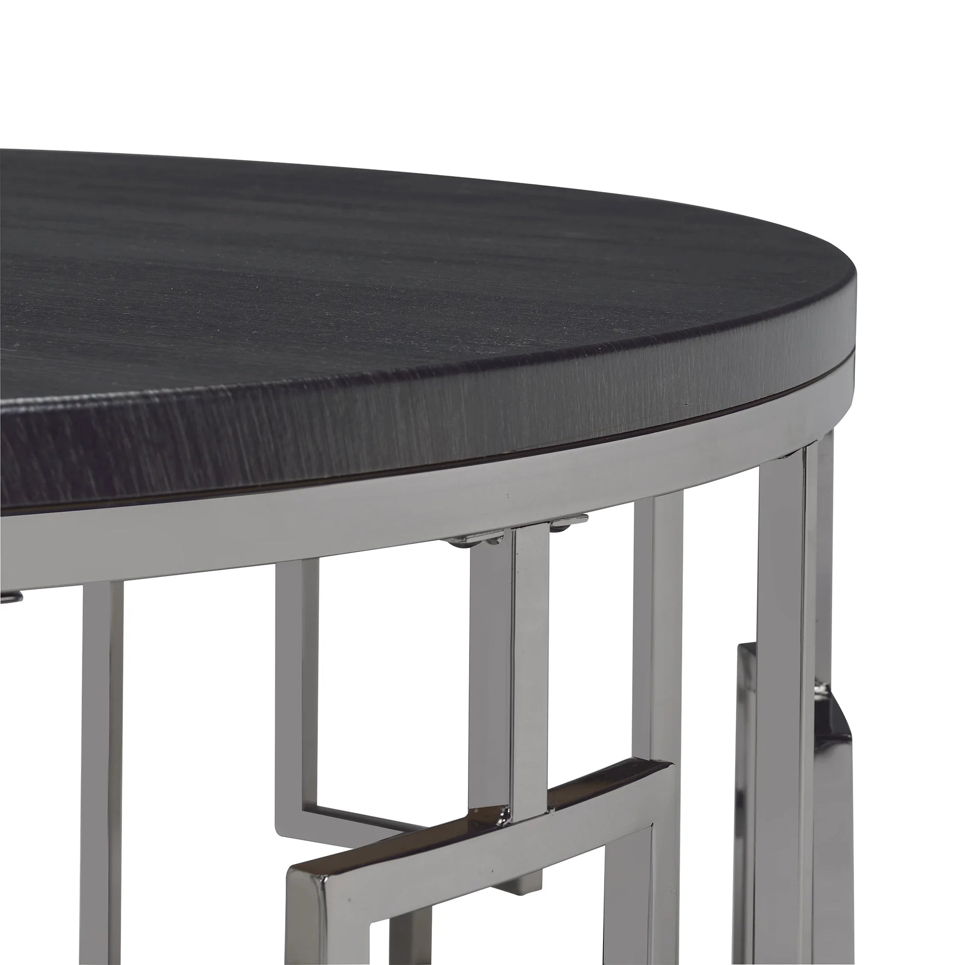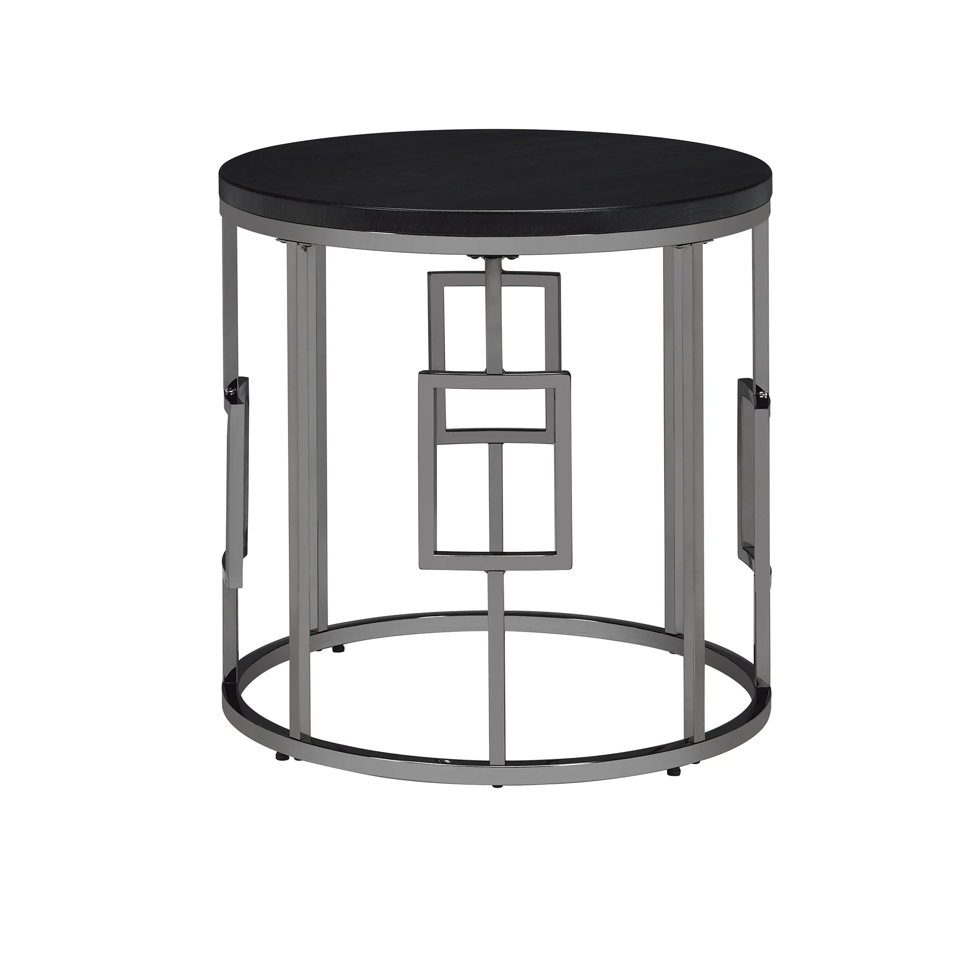 An occasional piece ideal for adding dark, sophisticated tones to your living space. The Ester End table is constructed of a black wooden tabletop and metal nickel base, which features clean lines and cutouts that can be appreciated from any angle of the room. Round table design can be ideal for small space living, but this standout piece can seamlessly transition into any place and keep it stylish year after year.