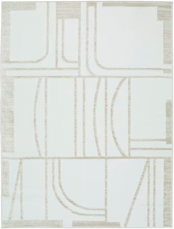Become enamored with this area rug’s subtle and sophisticated take on contemporary decor. Shades of ivory and beige create depth and dimension, forming a geometric pattern with fresh, on-trend appeal. The high-low construction and plush pile lend a soft, cozy feel underfoot.