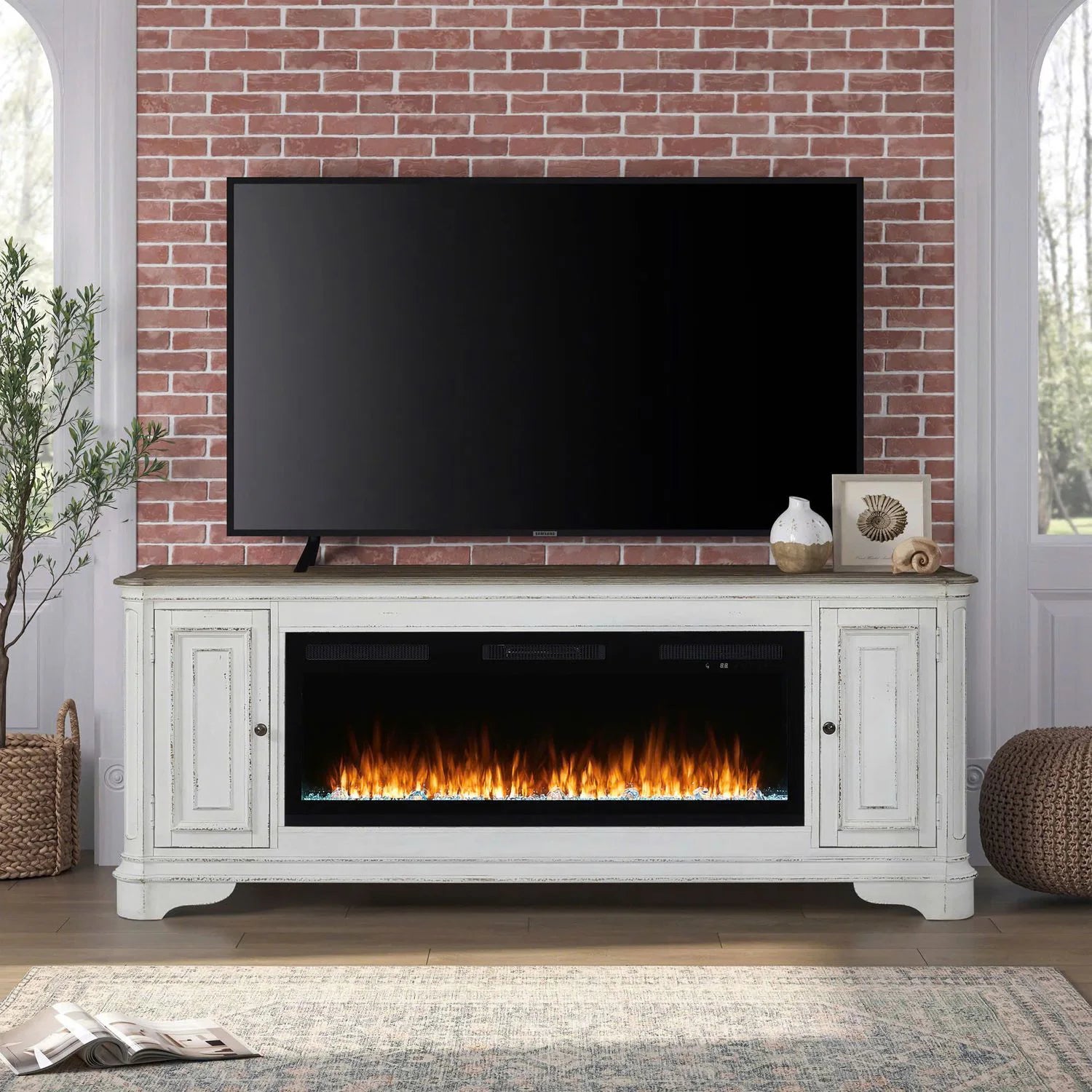 Fireplace TV Consoles - 244 82" Console With Fire FTS - White
