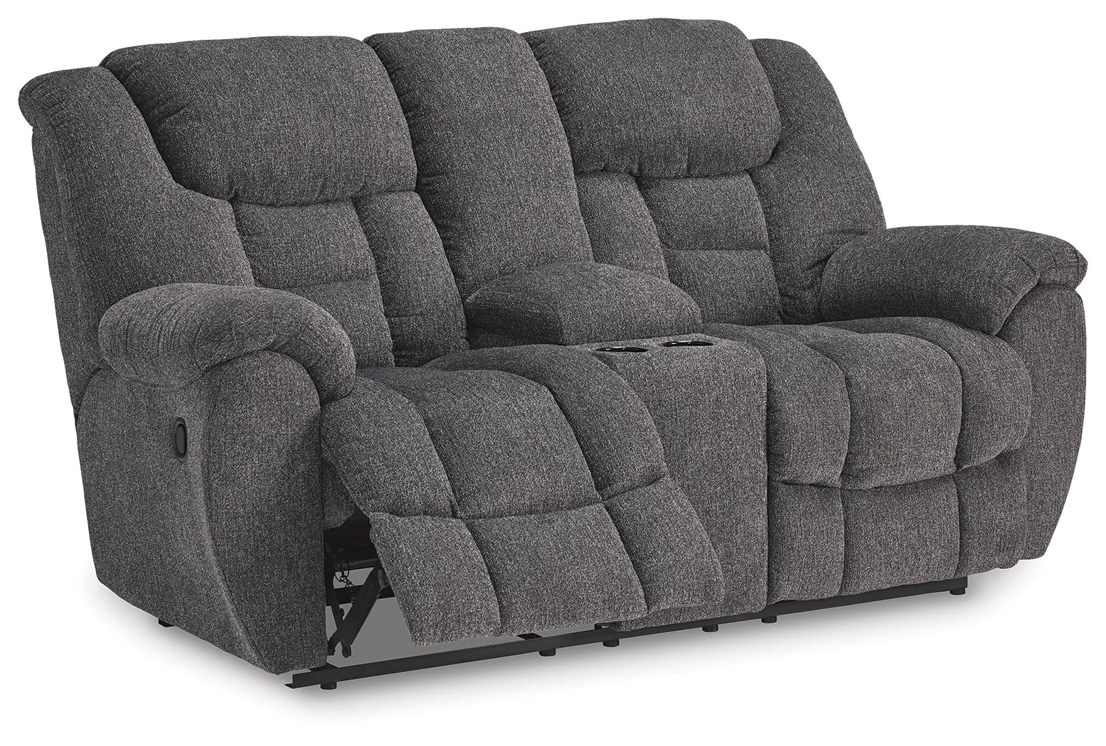 Foreside - Charcoal - Dbl Reclining Loveseat with Console