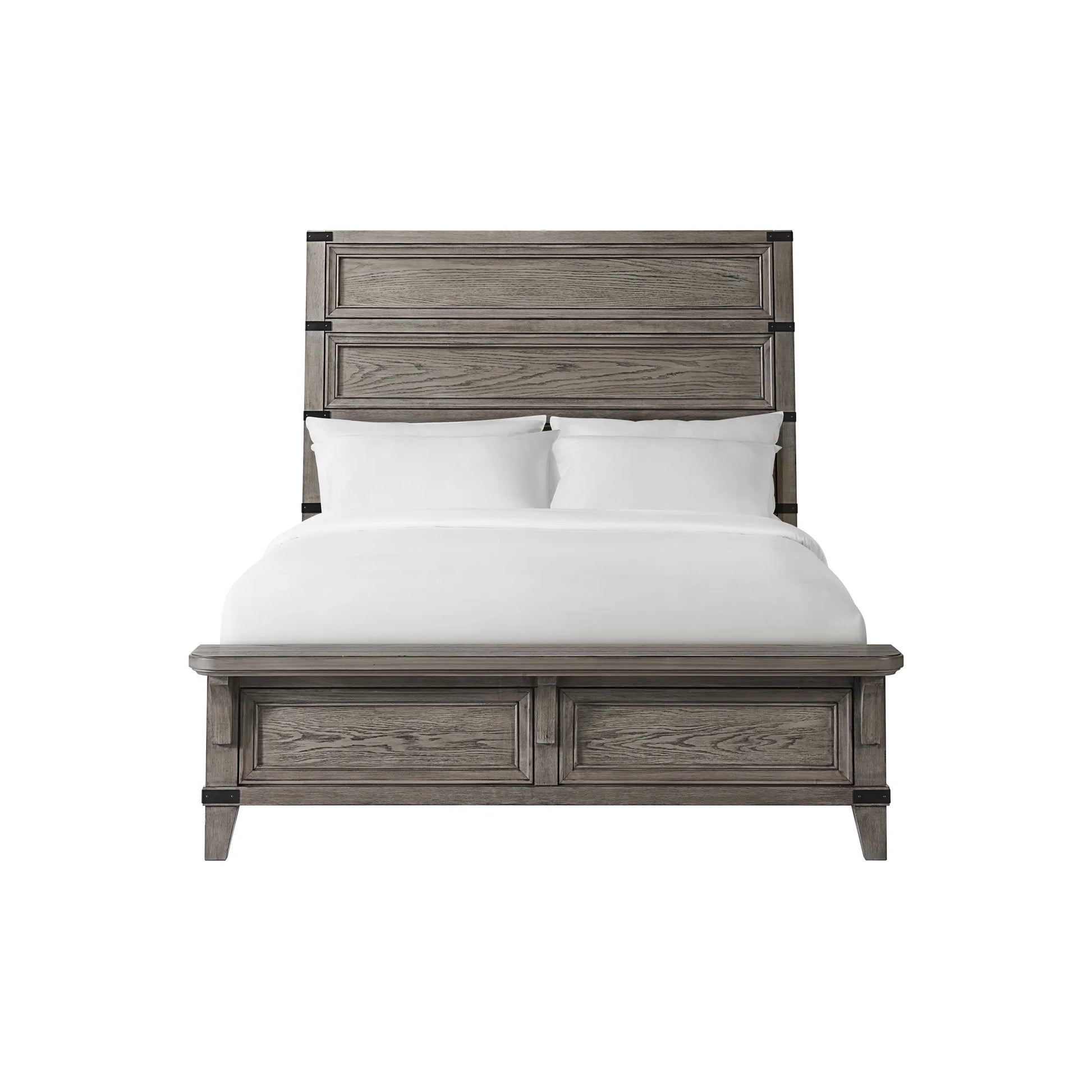 The Forge Bedroom Collection features Oak Veneer and Select Hardwood constructions in a wire-brushed steel gray finish. With detailed metal accents and hefty hardware, this trendy gray bedroom set will add diverse style to any bedroom.