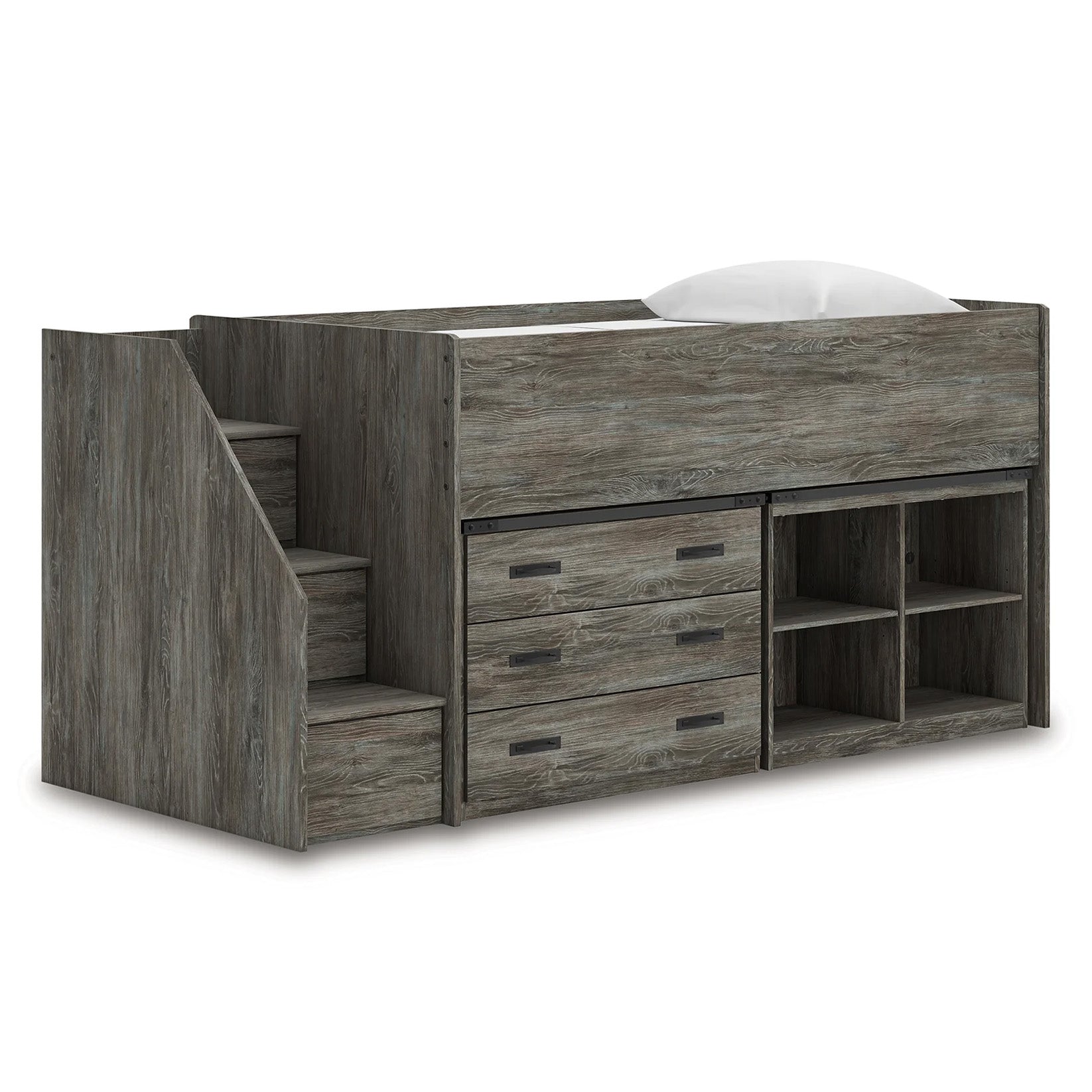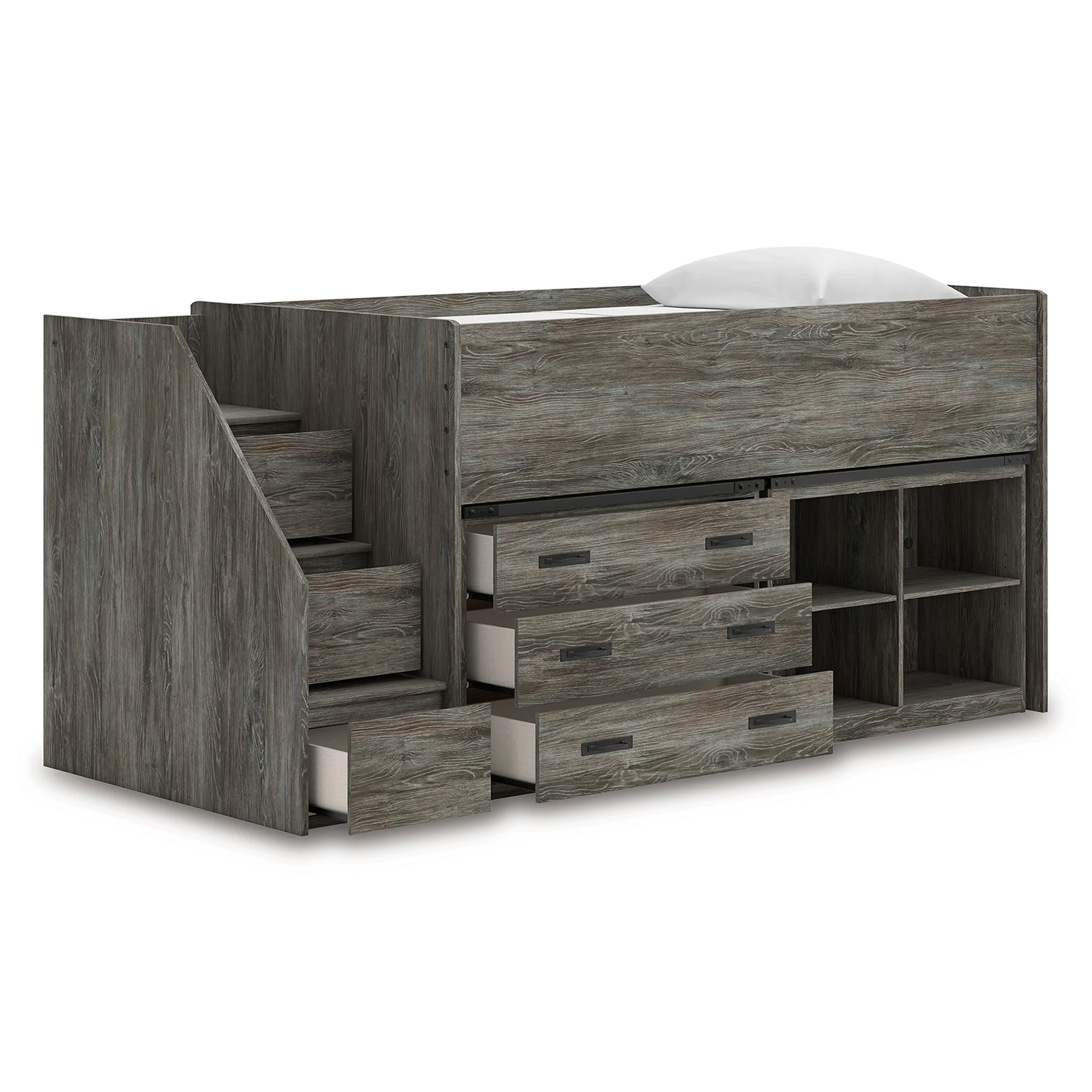 Frandern - Gray - Twin Loft Bed With Bookcase And Drawer Storage