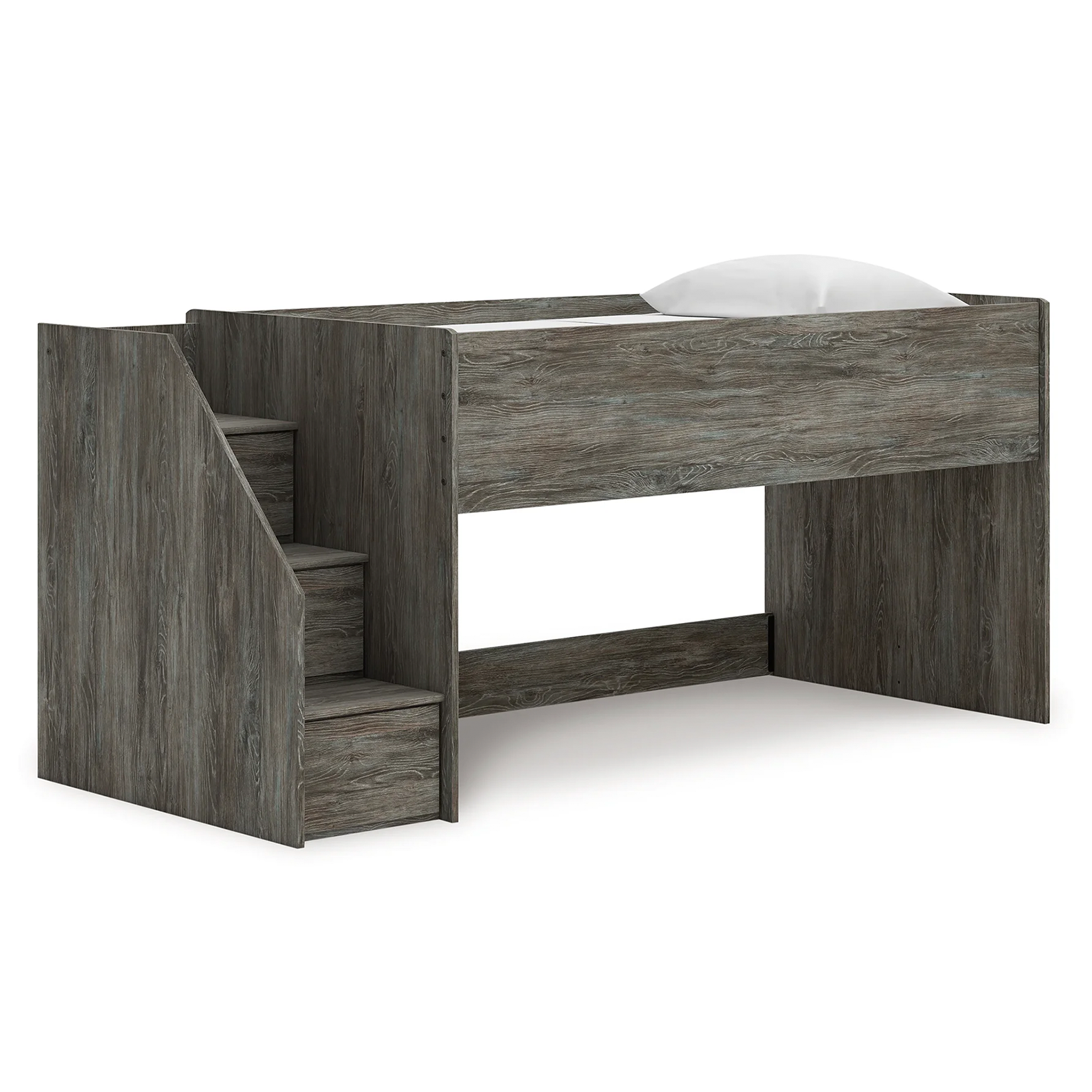 Frandern - Gray - Twin Loft Bed With Left Storage Steps