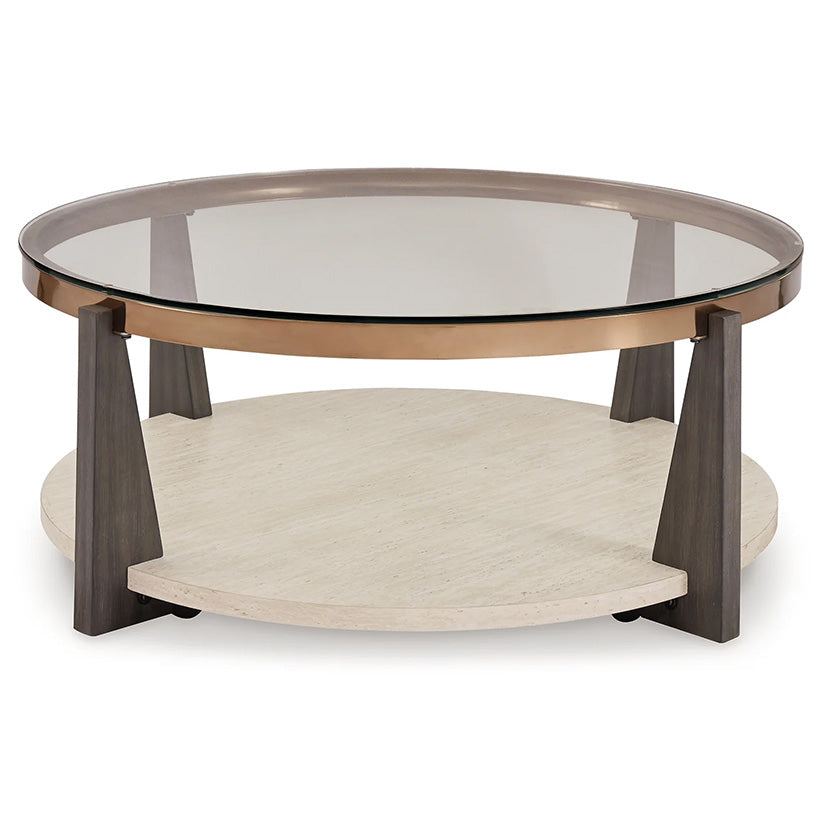 A modern twist on mixed-media design, the Frazwa coffee table is totally brilliant. Solid wood legs and a faux travertine shelf merge splendidly with the metal frame for a fresh, contemporary aesthetic. Casters allow you to roll it wherever you please. Talk about the perfect spot for cocktails and morning coffee to land.